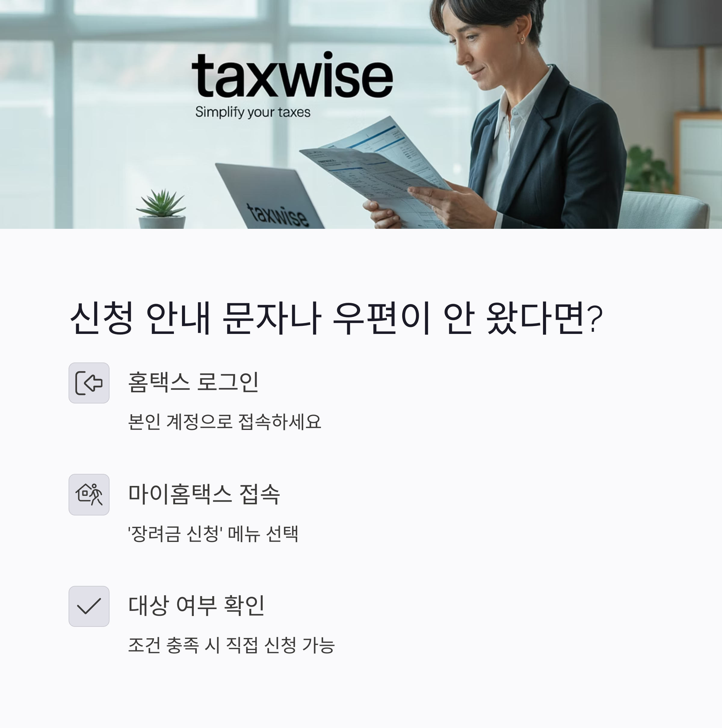 안내를 받지 못했더라도 홈택스에 접속해 신청 가능 여부를 직접 확인할 수 있습니다