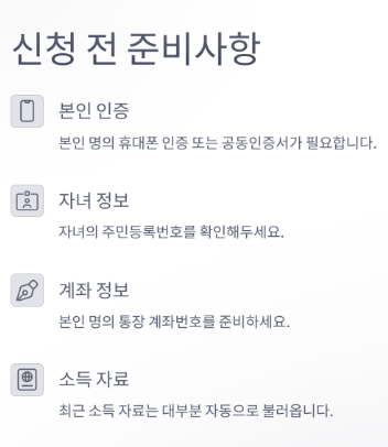 | 마이데이터 연동 | 일부 항목 수동 입력 | 자녀·소득 정보 자동 반영 |