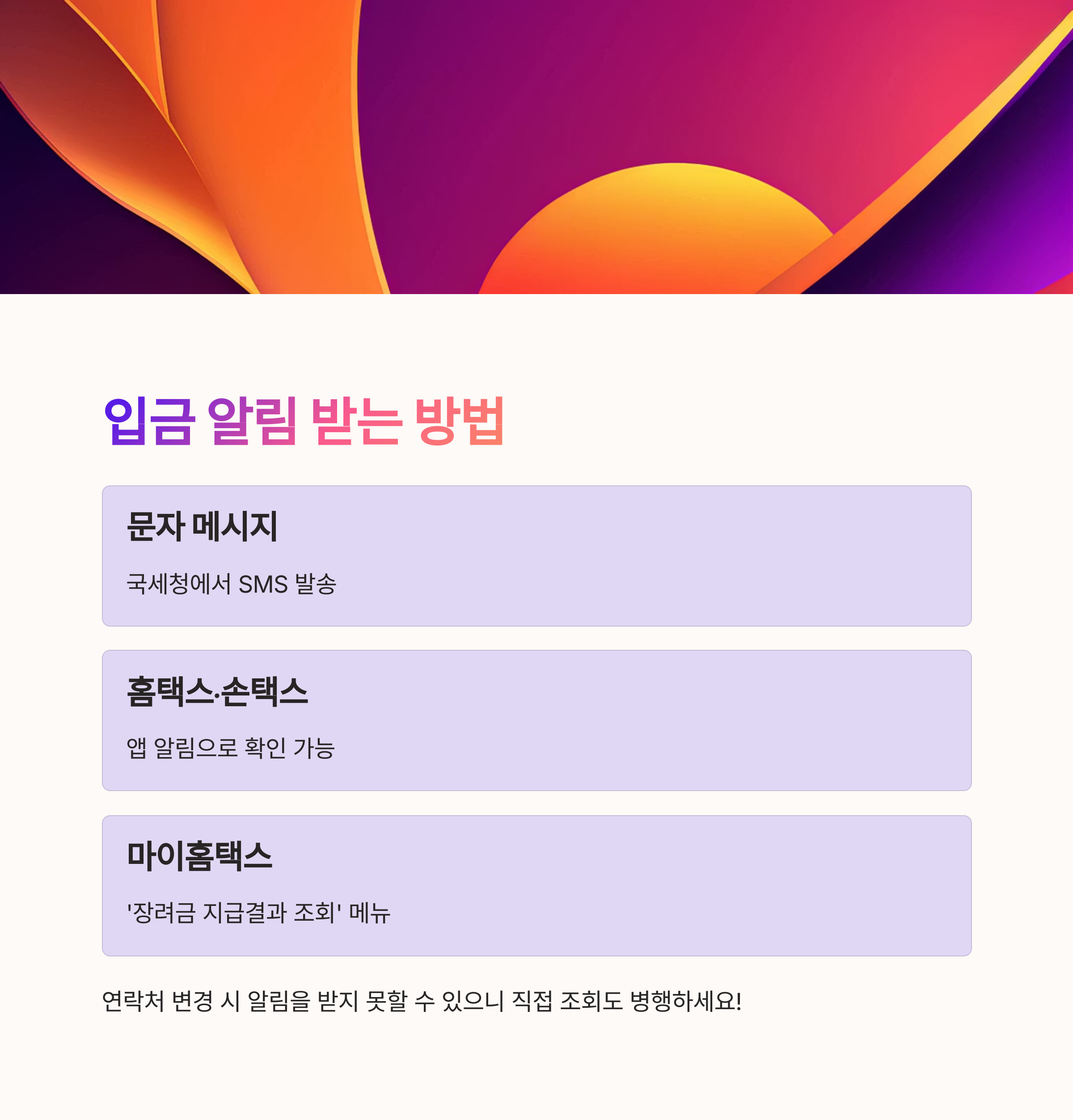 - 마이홈택스 > ‘장려금 지급결과 조회’ 메뉴에서도 확인 가능