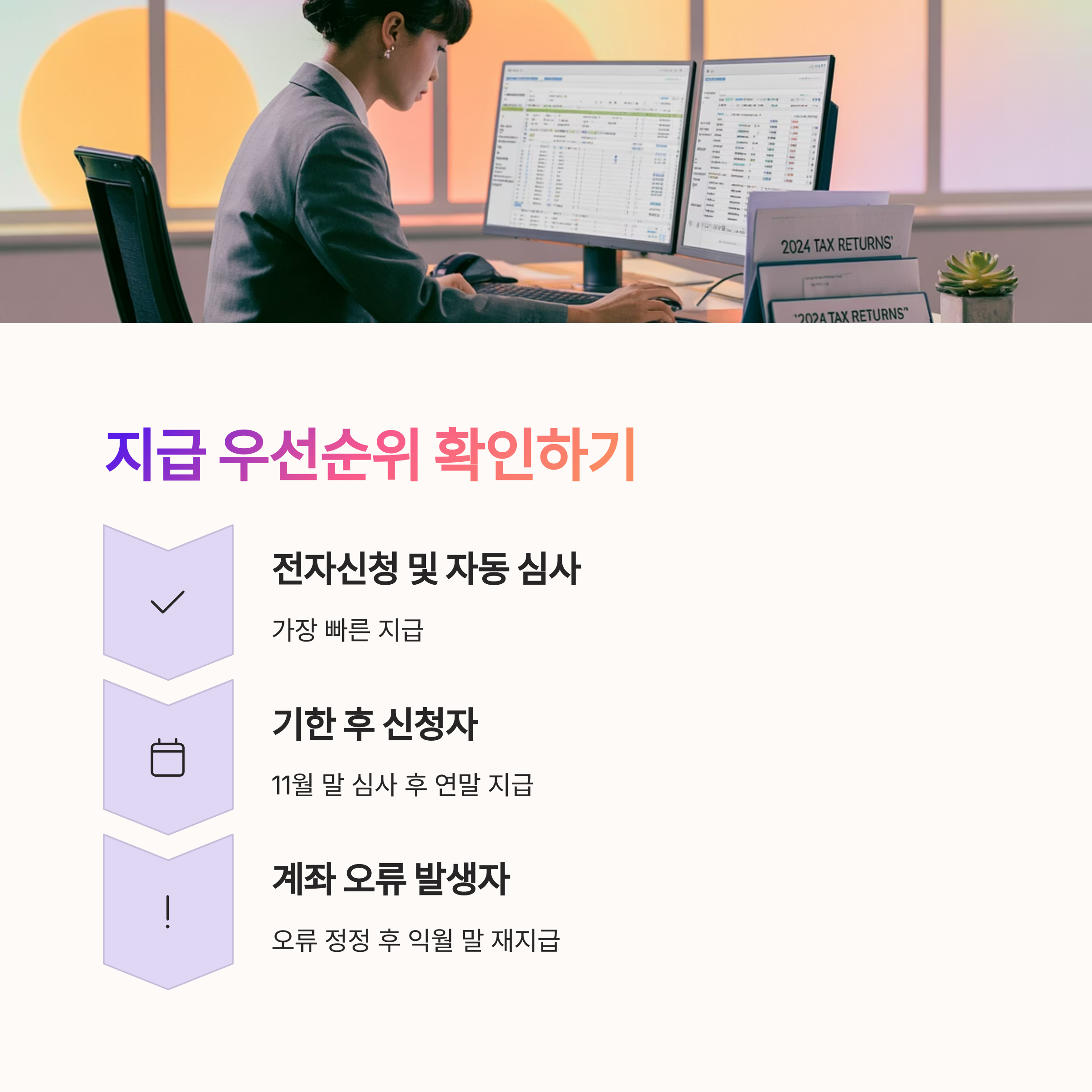 - 기한 후 신청자: 2025년 12월 말까지 별도 지급