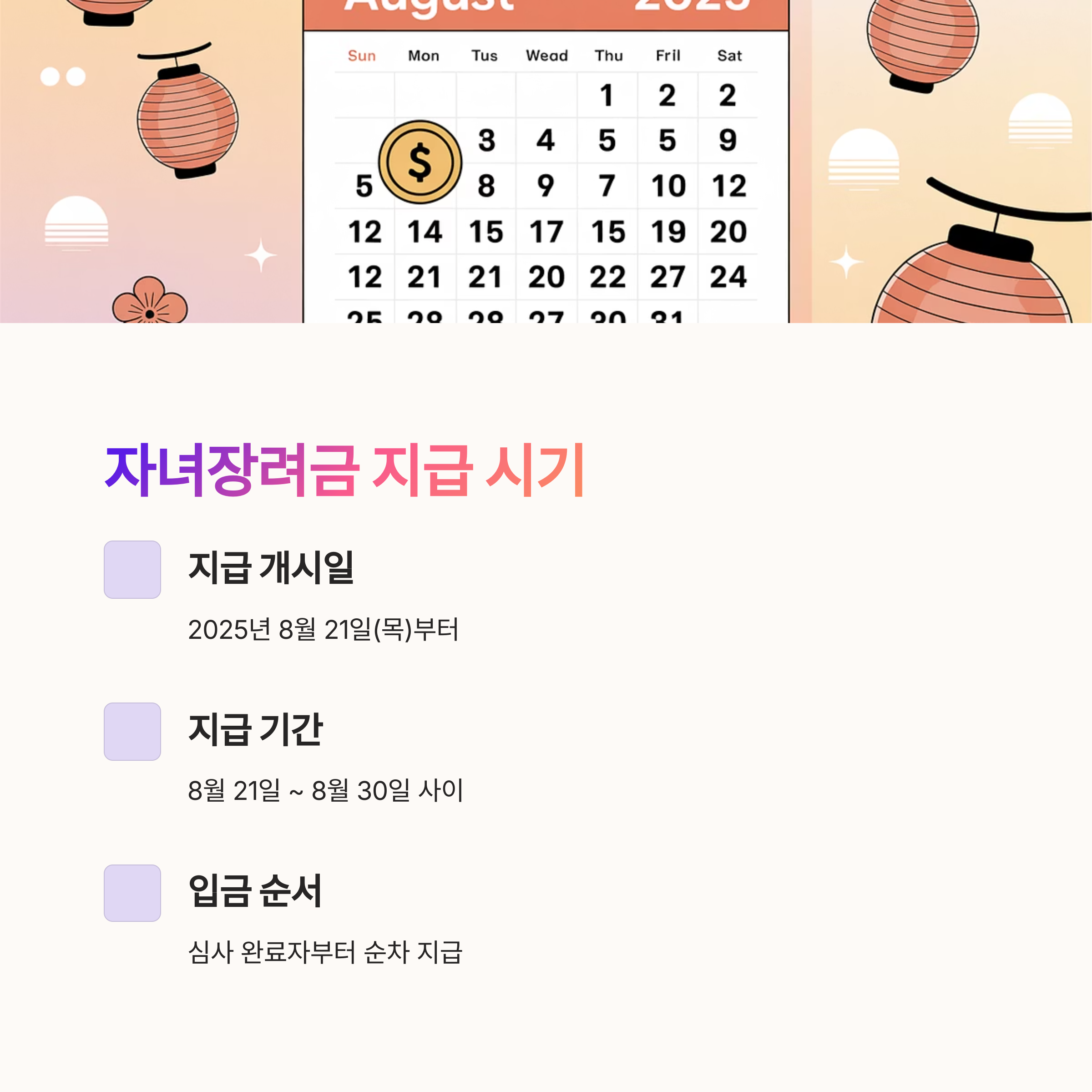 - 지급 기간: 2025년 8월 21일 ~ 8월 30일 사이