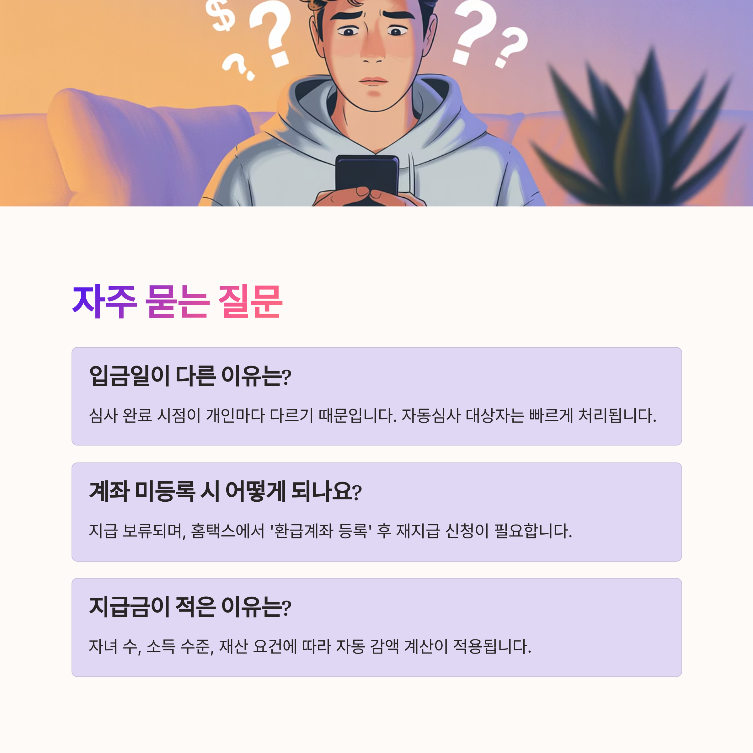 - 심사 지연: 소득자료 누락, 자녀 요건 미충족 시 추가 심사 소요