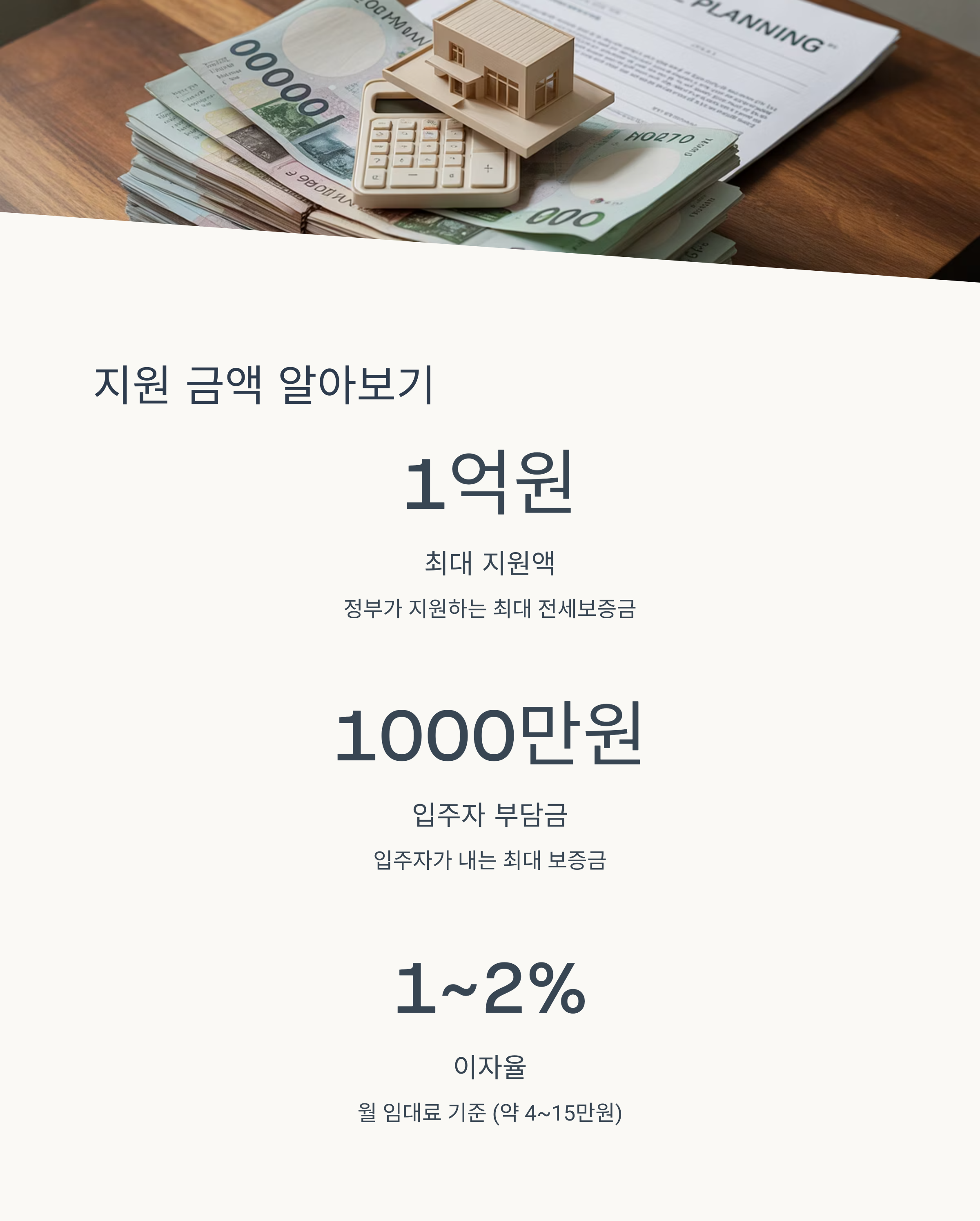 예를 들어 전세금이 1억 원인 집을 계약할 경우, 입주자는 보증금 1,000만 원과 월 임대료 약 12만 원 정도만 부담하며 나머지 금액은 LH가 집주인에게 직접 지급합니다. 집값이 1억 원을 초과하는 경우에는 초과 금액을 본인이 부담하거나 해당 매물은 임대 대상에서 제외될 수 있습니다.