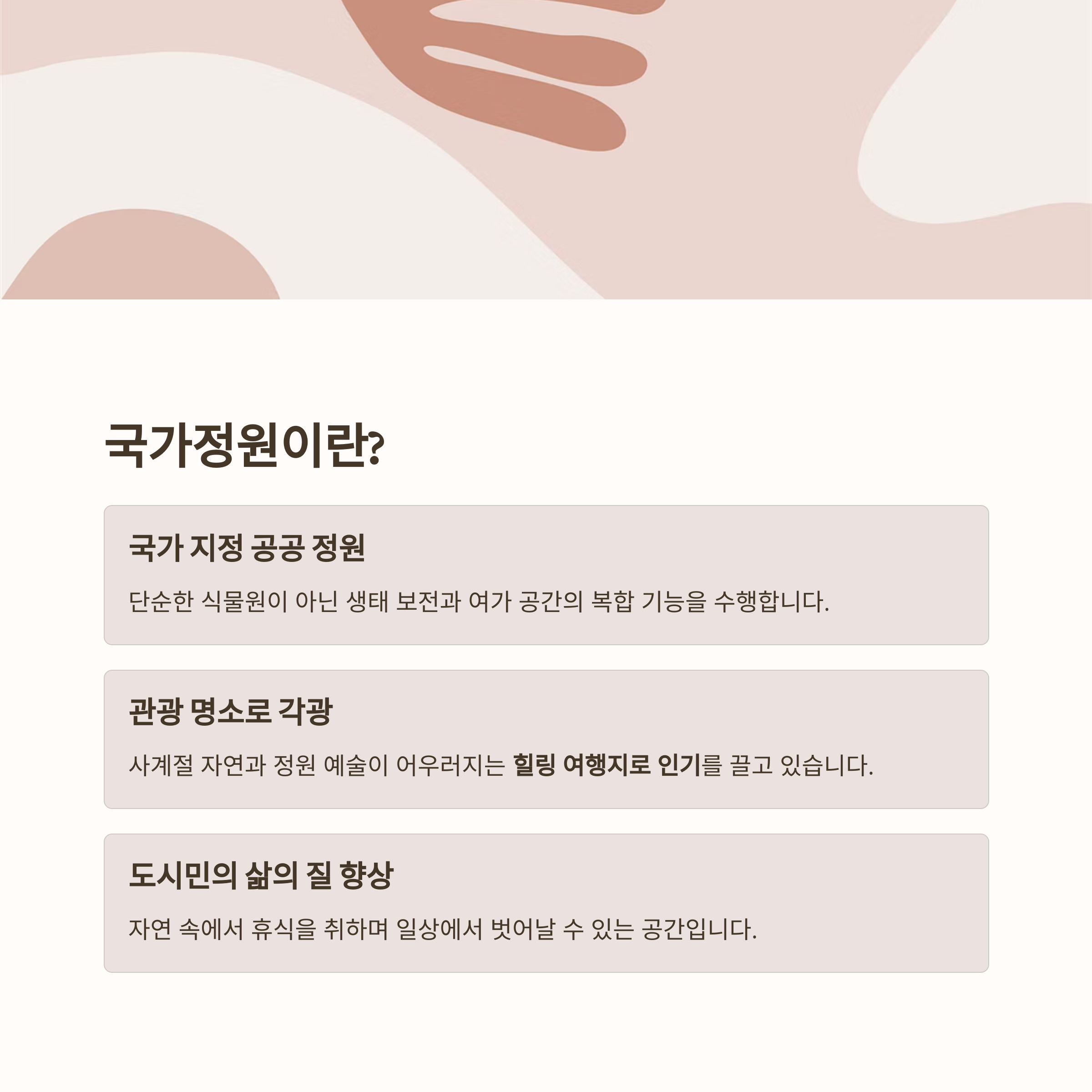 국가가 직접 지정한 공공 정원으로, 생태 보전과 여가 공간의