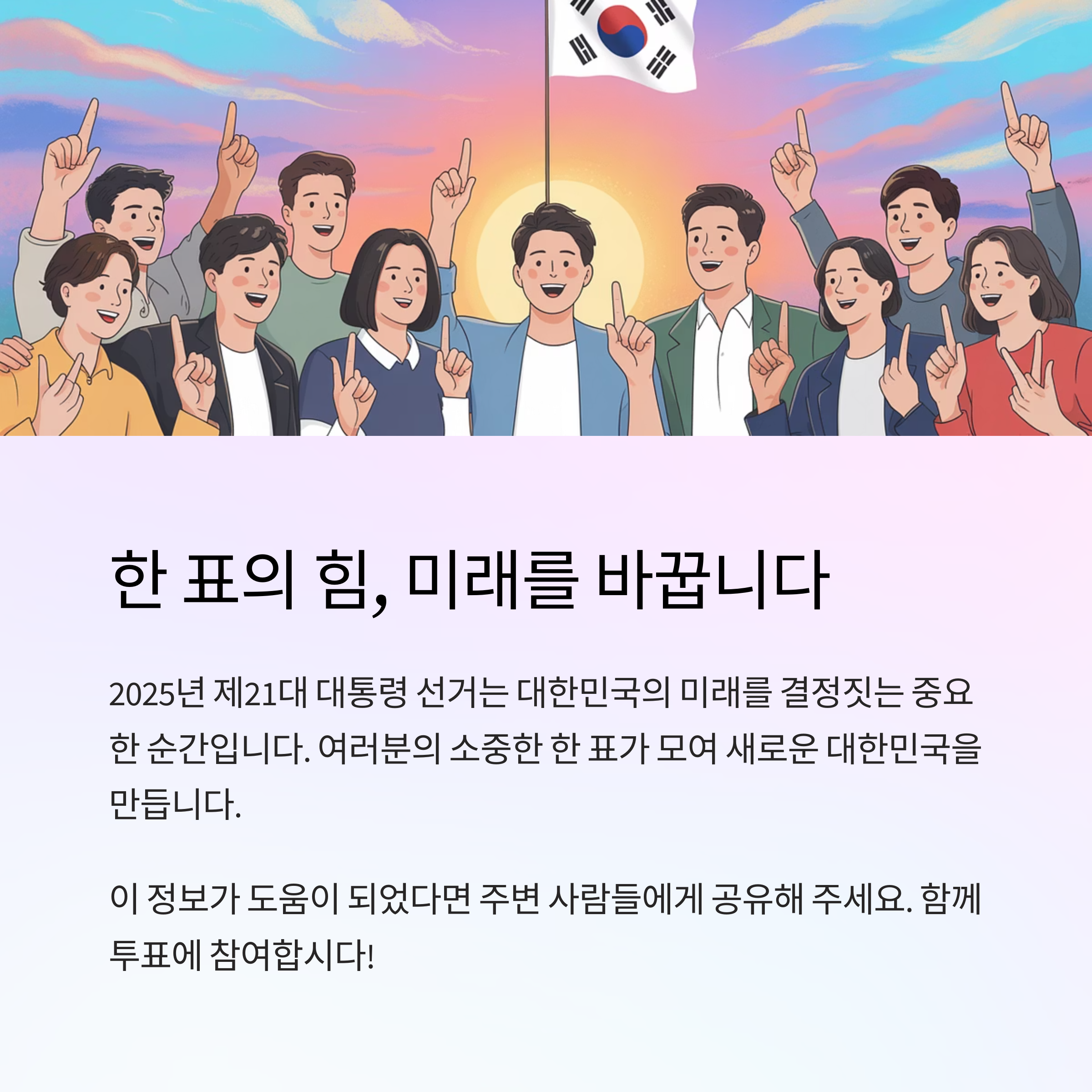 2025년 6월 3일, 대한민국은 제21대 대통령을 선출하는 본투표를 실시합니다.
