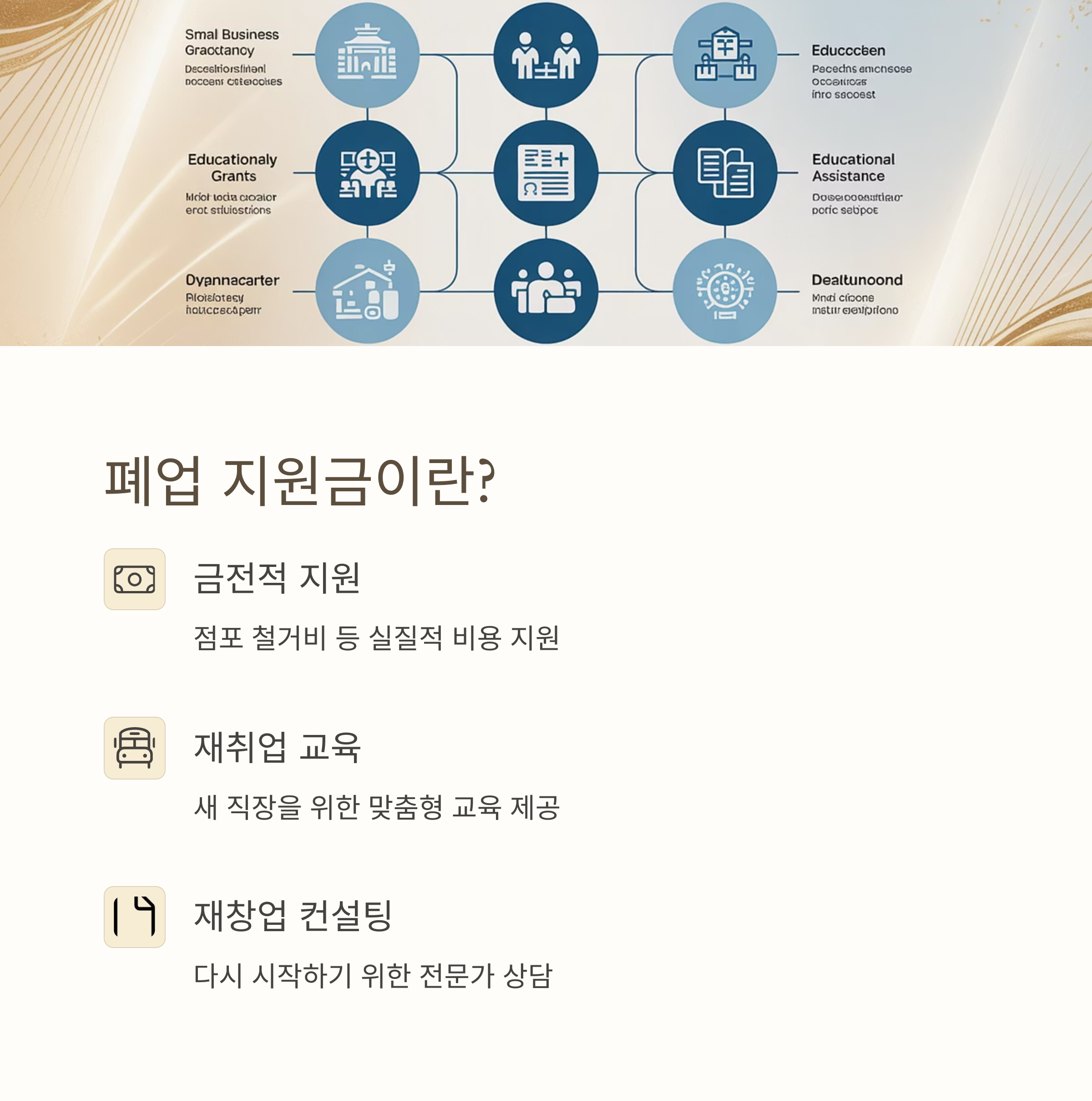 자영업의 폐업을 고려하는 것은 누구에게나 쉽지 않은 결정입니다. 오랜 시간 정성과 노력을 쏟아부은 사업을 접는다는 것은 단순한 경제적 손실을 넘어 심리적 부담과 미래에 대한 불안을 동반하기 때문입니다. 하지만 정부는 이러한 상황에 놓인 소상공인들을 위해 다양한 재기 지원 제도를 운영하고 있습니다. 특히 '자영업자 폐업 지원금'은 단순히 금전적인 보조를 넘어, 점포 철거, 재취업 교육, 재창업 컨설팅 등 폐업 이후의 삶을 체계적으로 지원하는 프로그램으로 구성되어 있습니다. 폐업은 끝이 아닌 새로운 시작입니다. 지금 이 글을 통해 정부의 든든한 지원 제도를 확인하고, 다시 도약할 수 있는 계기를 마련해 보세요.