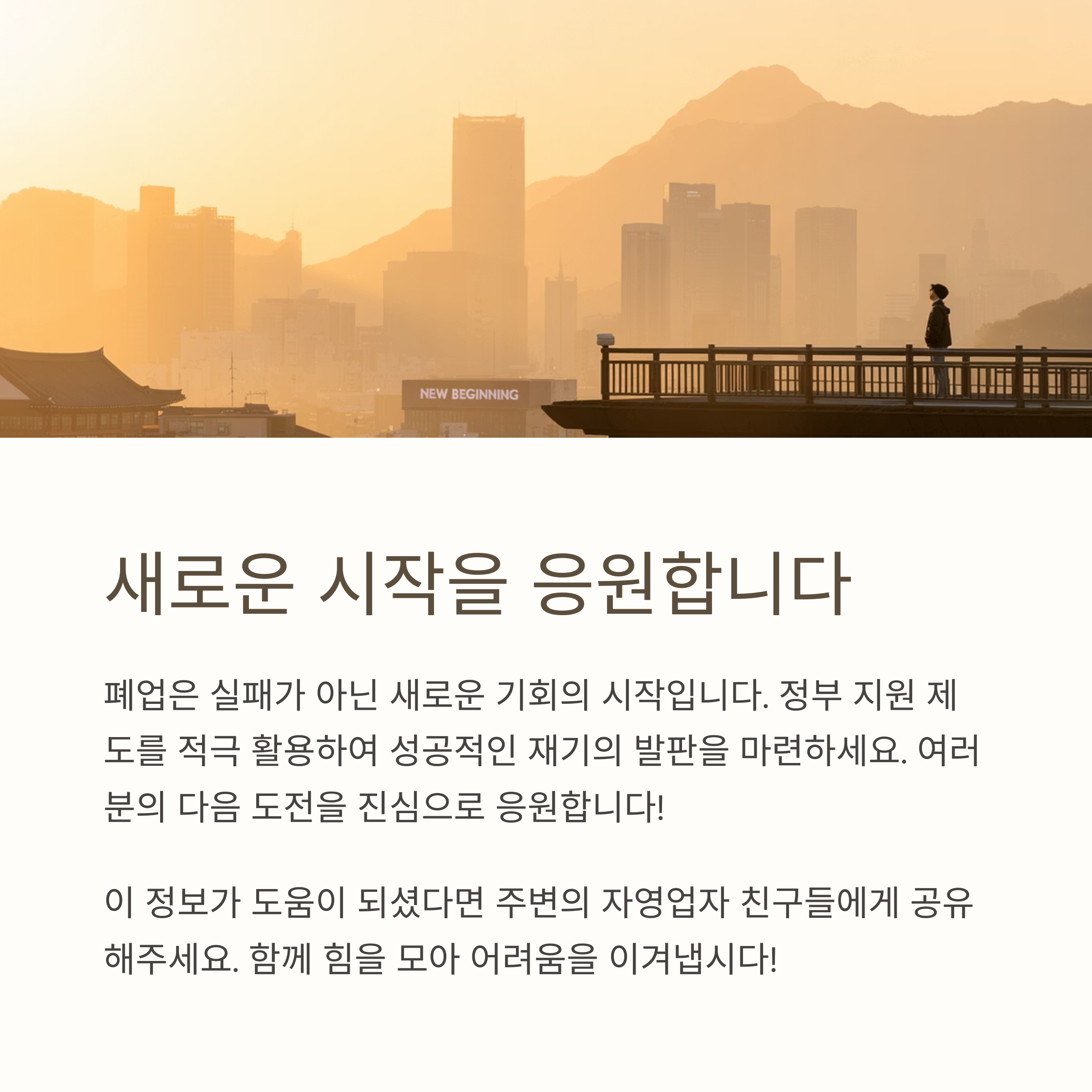 자영업자로서 폐업이라는 어려운 결정을 내리는 순간, 막막함과 상실감은 이루 말할 수 없을 것입니다. 하지만 대한민국 정부는 이러한 소상공인 분들이 좌절하지 않고 다시 일어설 수 있도록 다양한 폐업 지원 제도를 마련하고 있습니다. 오늘 함께 알아본 희망리턴패키지의 사업 정리 컨설팅과 점포 철거비 지원, 자영업자 고용보험을 통한 실업급여, 그리고 노란 우산공제의 생활 안정 지원 등은 여러분의 새로운 시작을 위한 든든한 버팀목이 될 것입니다. 혼자서 모든 어려움을 감당하기보다는, 이러한 정부 지원 제도를 적극적으로 활용하고, 필요하다면 전문가의 도움을 받아보세요. 폐업은 실패가 아니라 새로운 기회와 가능성을 탐색하는 전환점이 될 수 있습니다. 이 글이 폐업이라는 힘든 과정을 겪고 계시는 모든 자영업자분들에게 작은 희망과 실질적인 도움이 되기를 진심으로 바라며, 여러분의 성공적인 재기를 응원합니다!