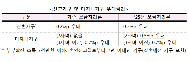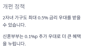 | 다자녀가구 (3자녀 이상) | 0.7%p 우대 | 0.7%p 우대 |