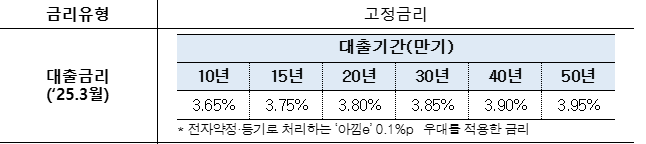 | 구분 | 기존 보금자리론 | '25년 보금자리론 |