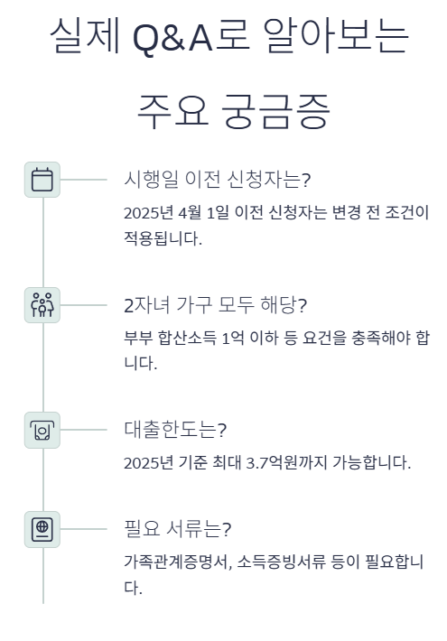 2025년 4월 1일부터 시행되는 새로운 보금자리론 개편 내용에 대해 궁금한 점이 많으실 텐데요, 자주 묻는 질문들을 모아 답변해 드립니다.