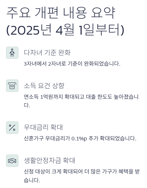 달라지는 다자녀 보금자리론: 주요 개편 내용