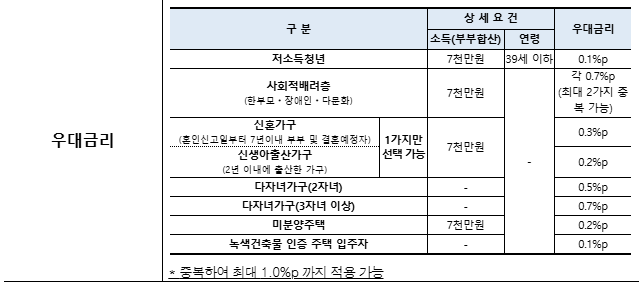 | 신혼가구* | 0.2%p 우대 | 0.3%p 우대 |