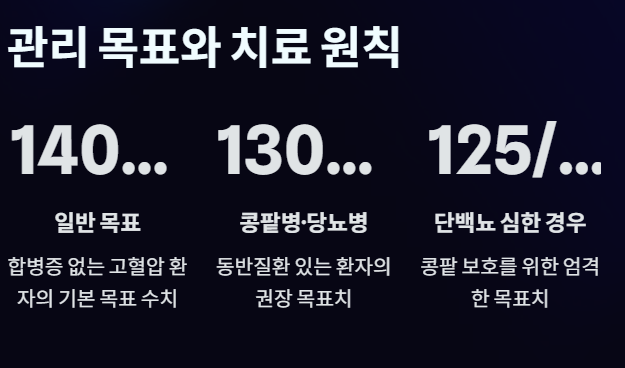 - 담당 주치의와 상의하여 자신에게 맞는 목표 혈압을 설정하고 꾸준히 관리해야 합니다.