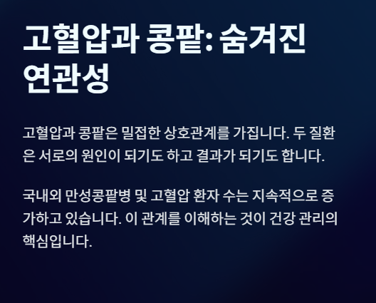 - 콩팥 기능 저하와 혈압 상승: 반대로, 콩팥의 기능이 저하되면 체내 염분과 수분의 배설이 제대로 이루어지지 않아 혈액량이 늘어나고 혈압이 오르게 됩니다.