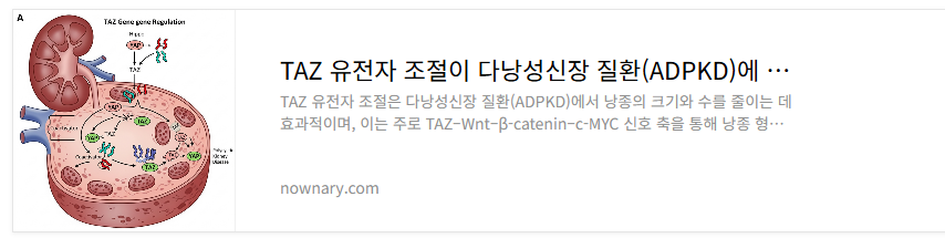 | TAZ 유전자 조절이 다낭성신장 질환(ADPKD) 낭종 크기에 미치는 영향 (0) | 2025.06.13 |
