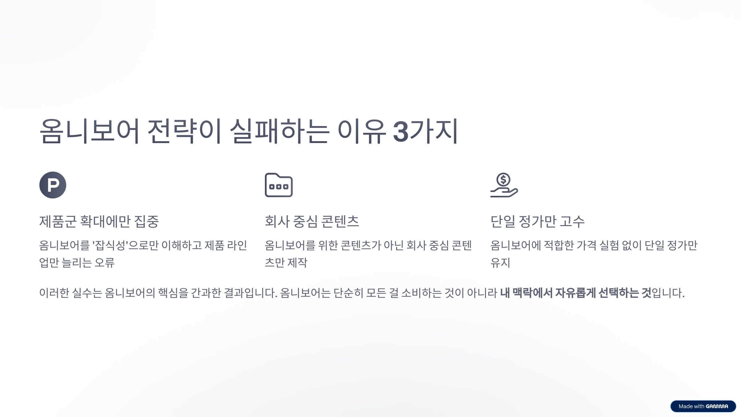 - 옴니보어를 위한 콘텐츠가 아니라 회사 중심 콘텐츠를 제작
