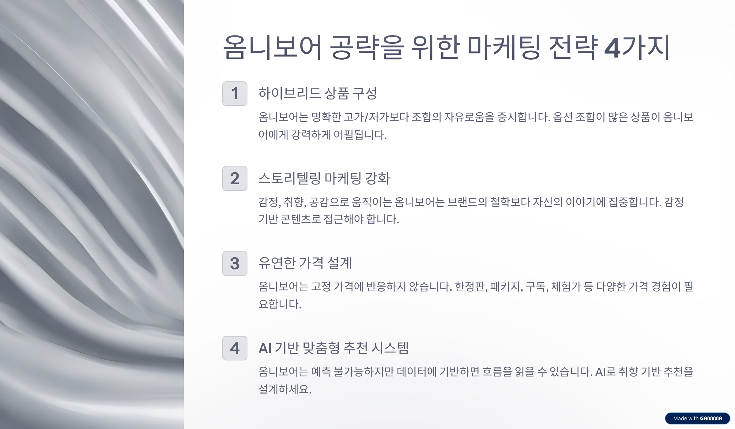 옴니보어는 고정 가격에 반응하지 않습니다. 한정판, 패키지, 구독, 체험가 등 다양한 가격 경험이 필요합니다. - AI 기반 맞춤형 추천 시스템 도입
