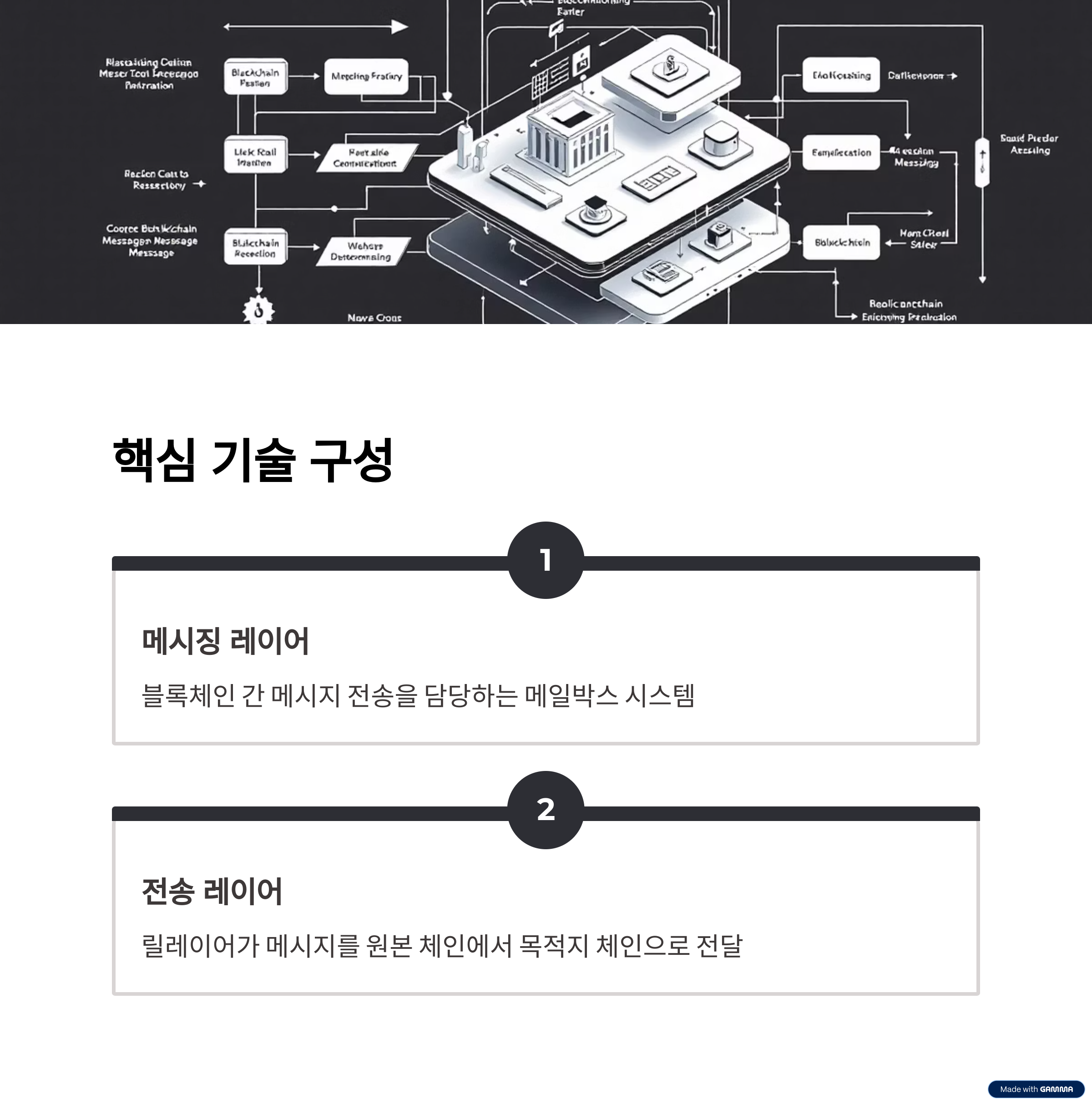 | 메시징 레이어 | 블록체인 간 메시지 전송을 담당하는 메일박스 시스템 |