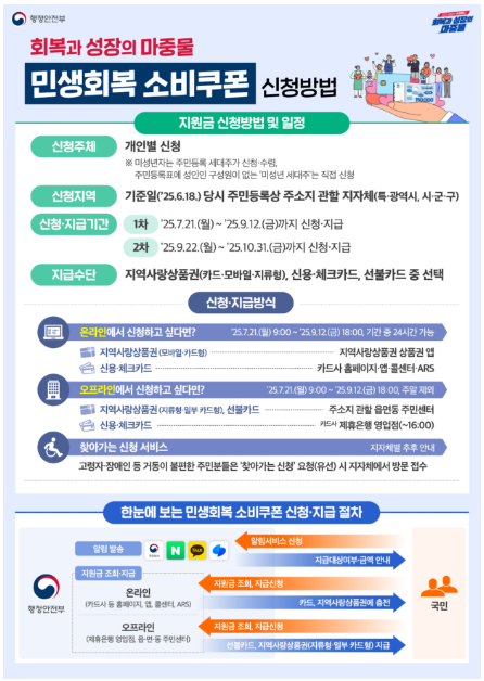 소비쿠폰 신청은 지역사랑상품권 홈페이지 또는 앱에서 신청할 수 있으며,