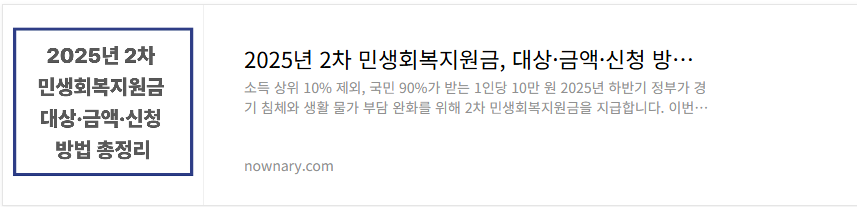 | 2025년 2차 민생회복지원금, 대상·금액·신청 방법 총정리 (1) | 2025.08.16 |