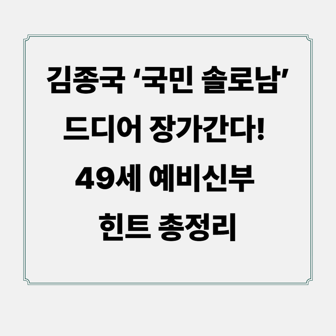대한민국 대표 ‘국민 솔로남’ 김종국 씨, 드디어 결혼 소식이 들려오려나요? 탄탄한 몸매와 뛰어난 가창력, 그리고 예능감까지 겸비한 그이기에, 그의 결혼 소식을 손꼽아 기다려온 팬들이 정말 많을 텐데요. 최근 온라인 커뮤니티와 SNS를 중심으로 퍼지고 있는 김종국 씨 결혼 관련 썰들과 예비신부에 대한 힌트들을 모아 여러분께 속 시원하게 정리해 드립니다! 과연 ‘런닝맨’ 멤버들의 축복 속에 김종국 씨가 품절남 대열에 합류하게 될지, 함께 알아볼까요?
