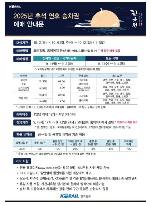 2025년 추석 승차권 예매 안내