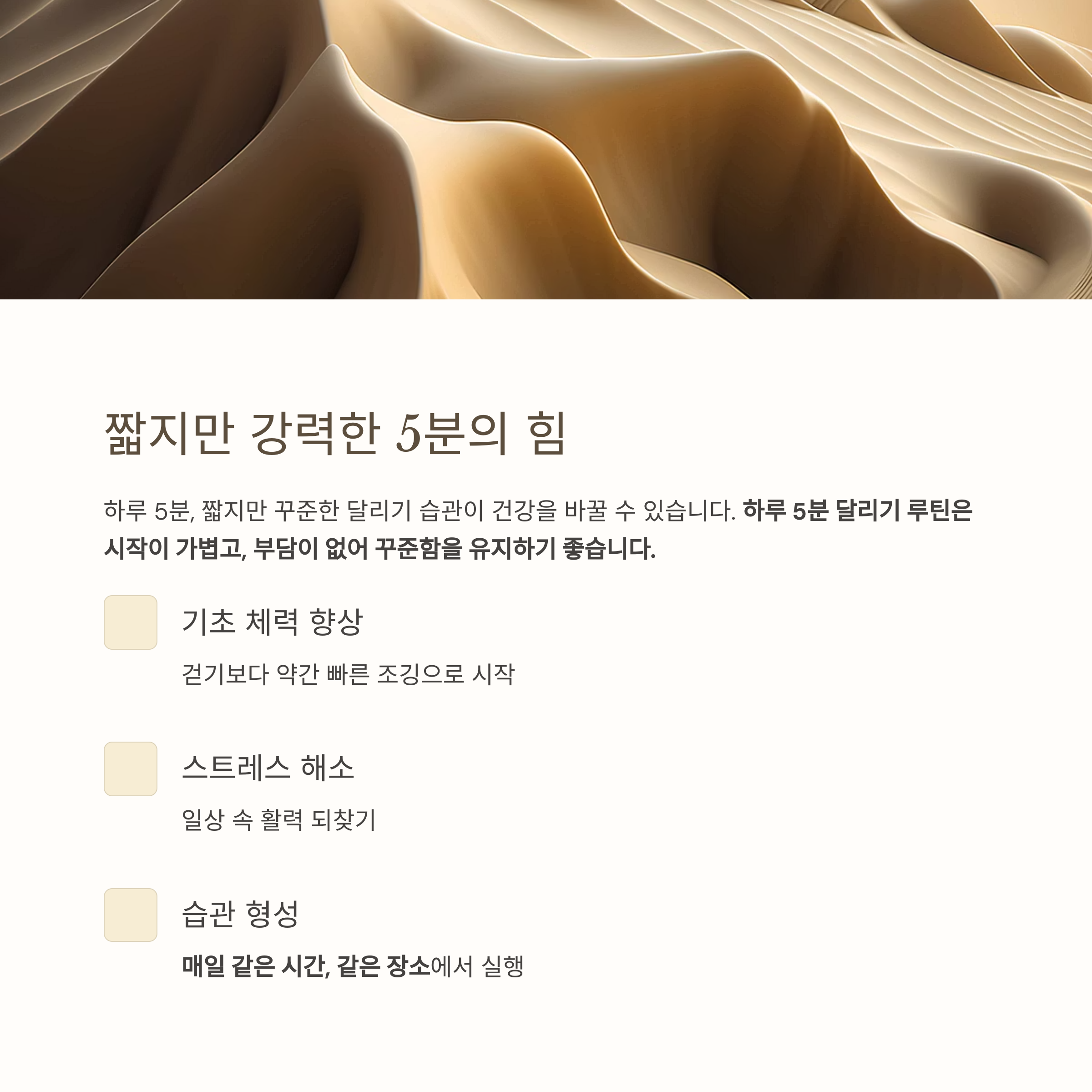 하루 5분, 짧지만 꾸준한 달리기 습관이 건강을 바꿀 수 있습니다.