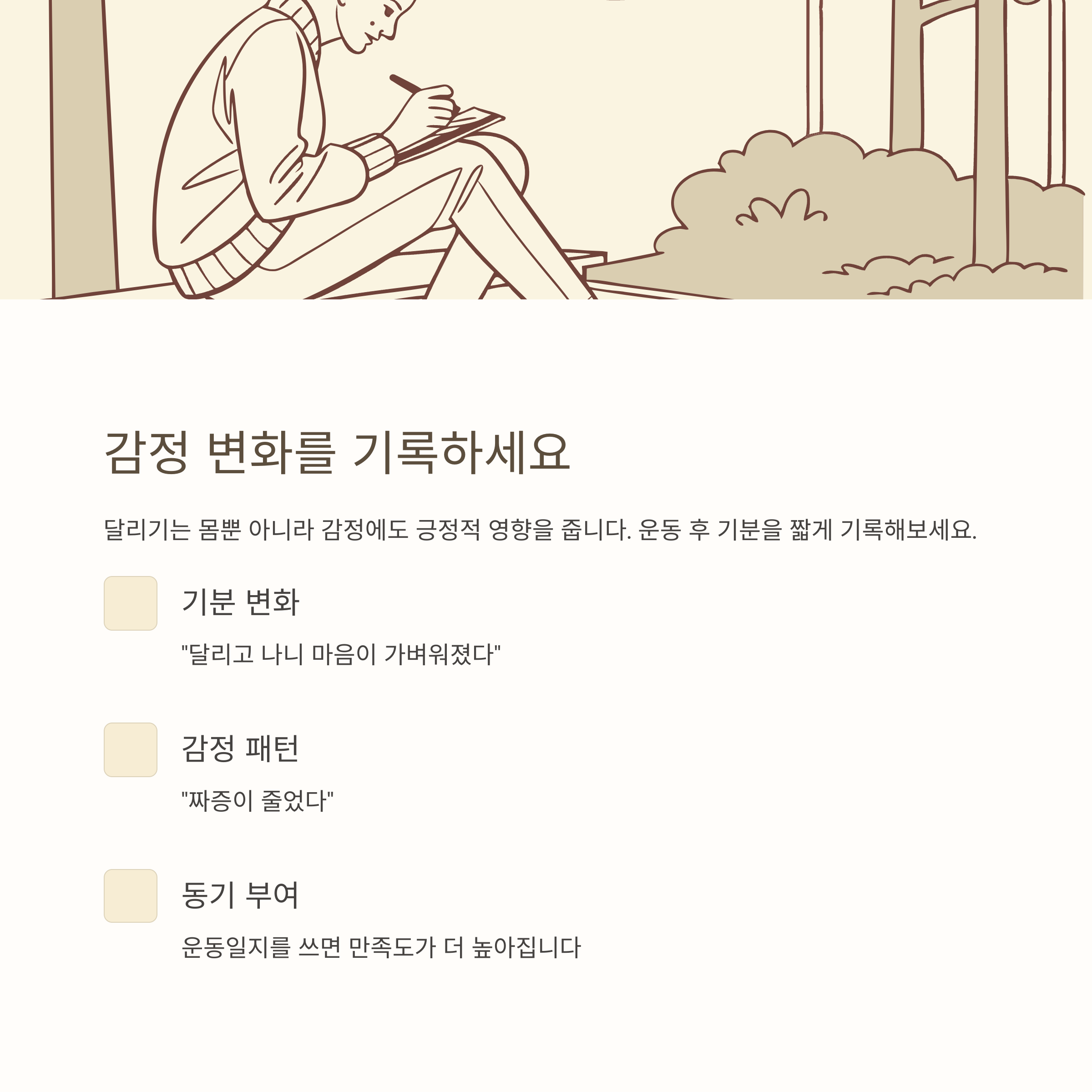 운동 후 기분을 짧게 기록하는 것만으로도 일상의 패턴을 발견할 수 있습니다.