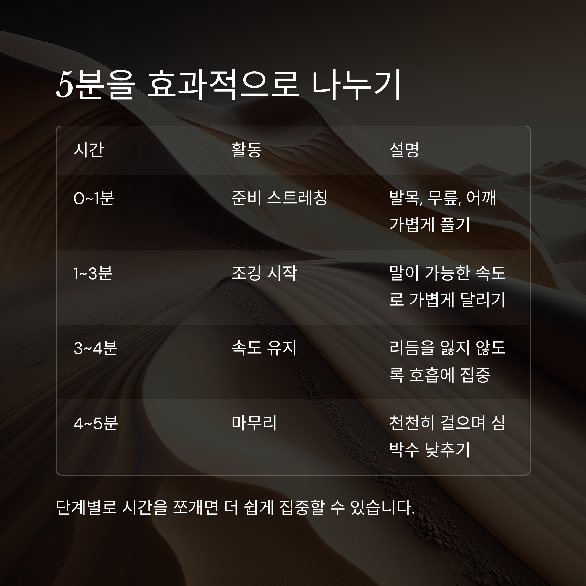 운동이 어렵거나 바쁜 일상 속에서도 실천 가능한 5분 달리기 루틴을 통해