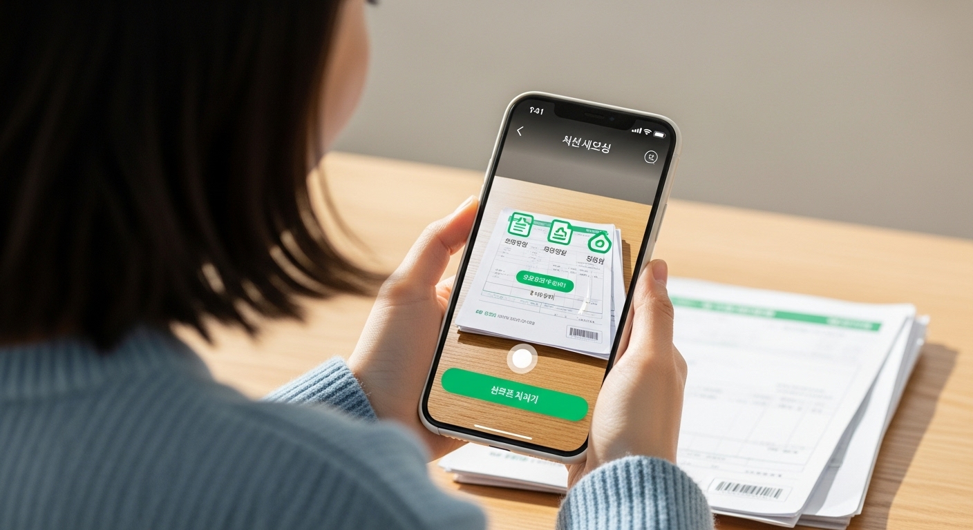 - 준비된 서류 (진료비 영수증, 진단서 등)를 스마트폰 카메라로 촬영합니다.