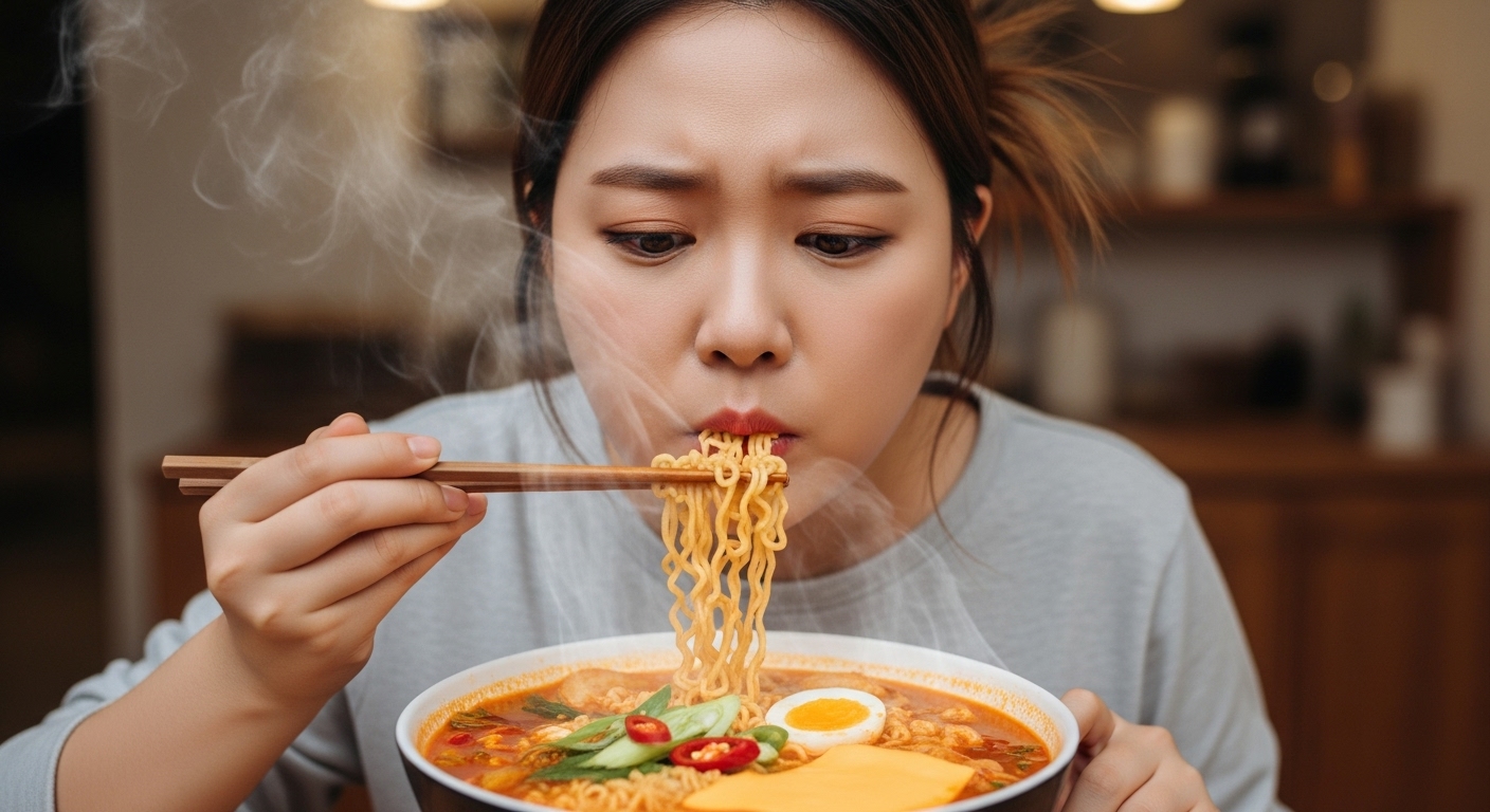 라면, 햄, 소시지, 베이컨처럼 가공식품도 마찬가지예요. 높은 염도뿐 아니라 보존료와 첨가물이 더해져 있어 위 점막을 긴장시키고 소화 속도를 떨어뜨립니다. 특히 라면을 먹을 때는 대부분 국물까지 함께 드시는 경우가 많아 염분이 훨씬 더 높아져요.