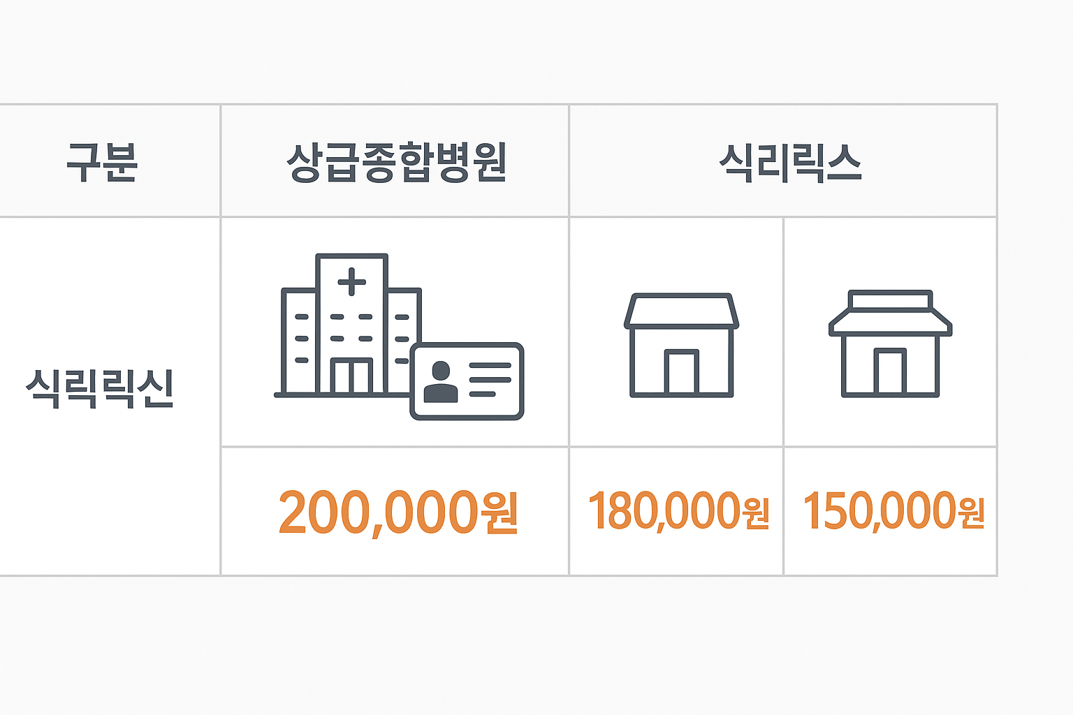 | 병원 규모 | 대학병원 > 종합병원 > 개인의원 순으로 비용 높은 경향 있음 |