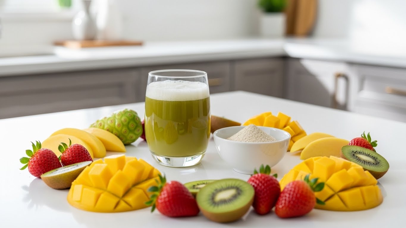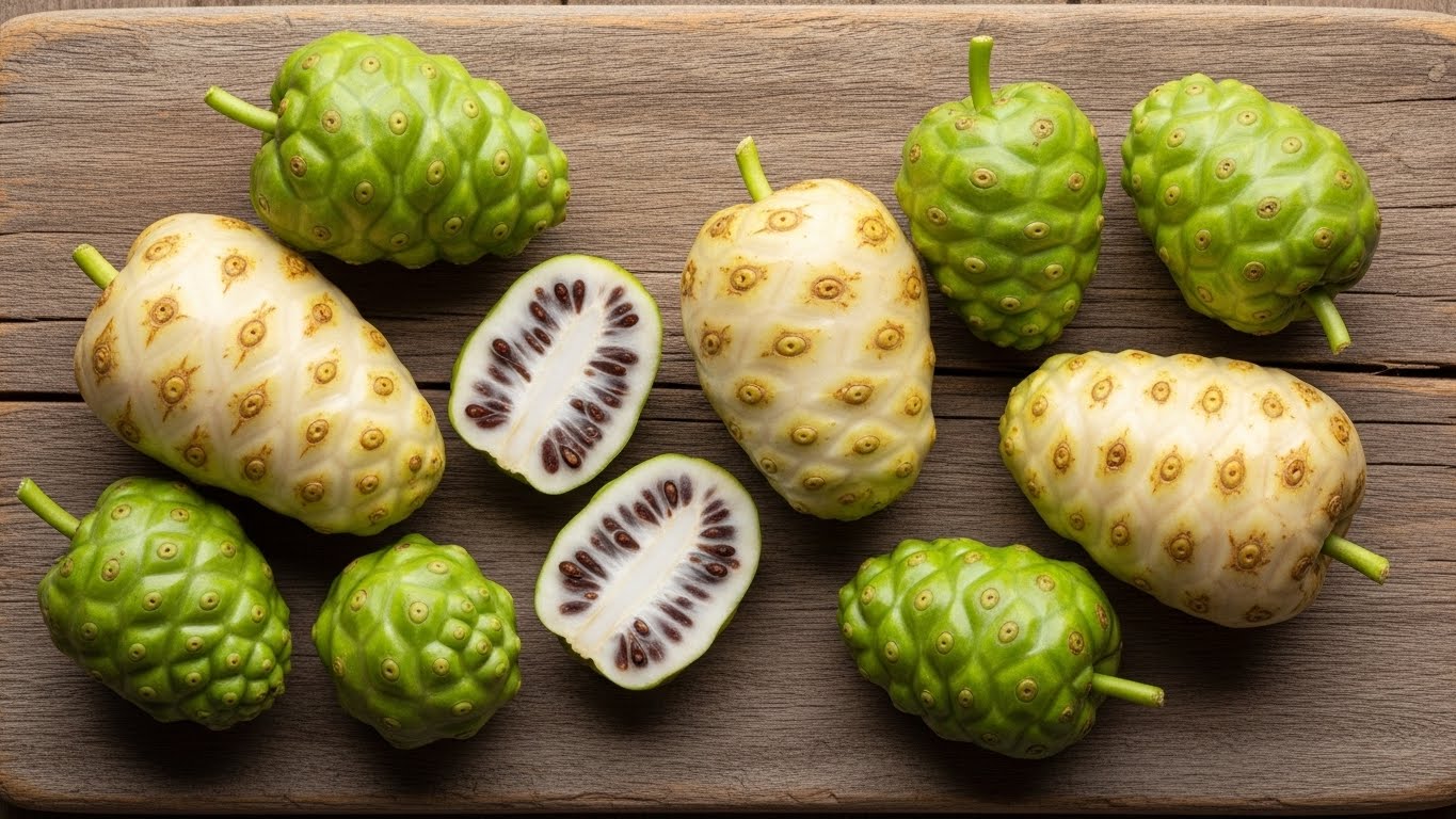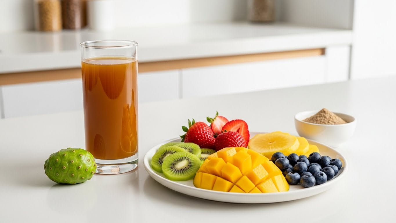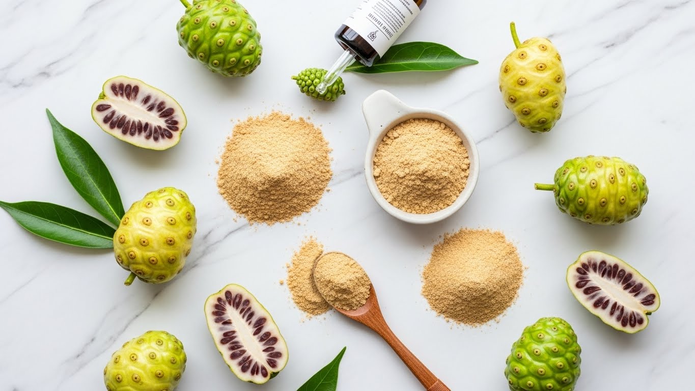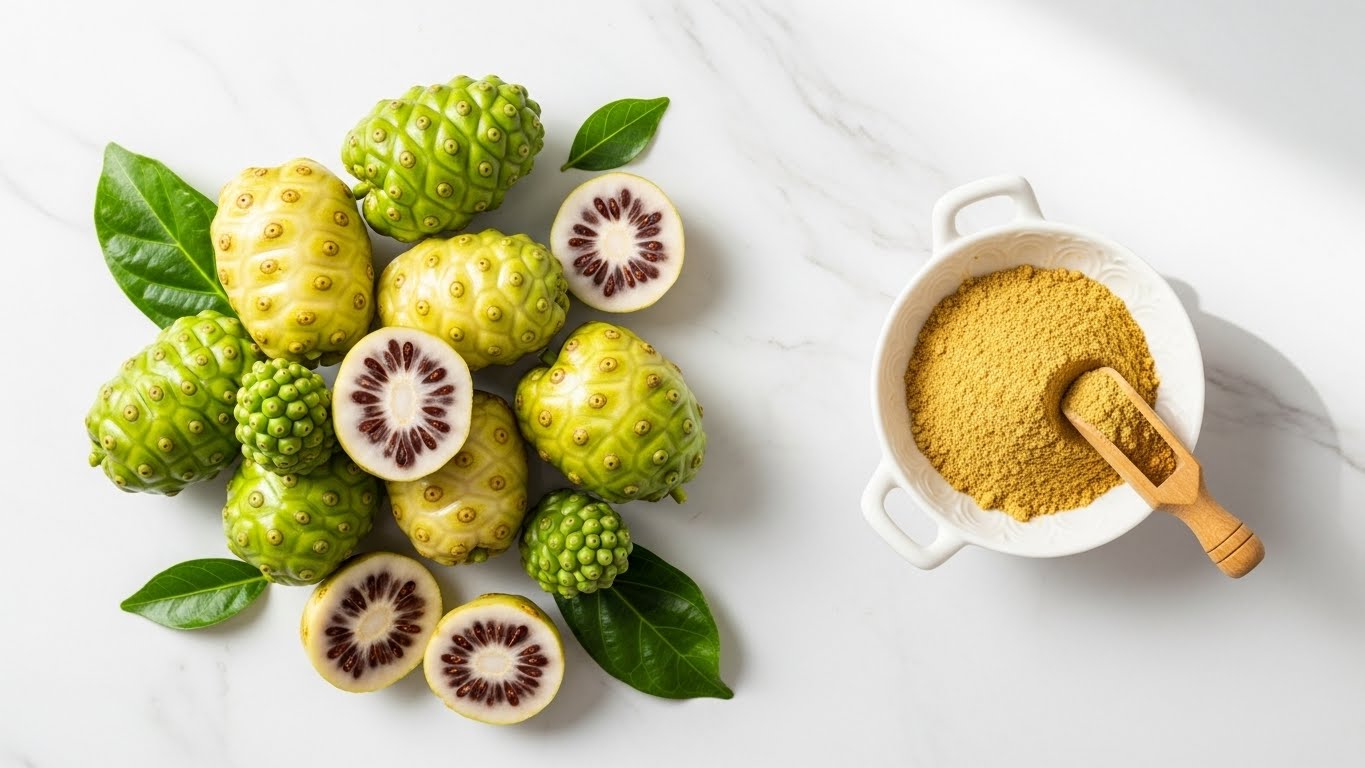 노니는 항산화 성분이 풍부한 열대 과일로 면역력과 피로 회복에 도움을 줄 수 있지만,