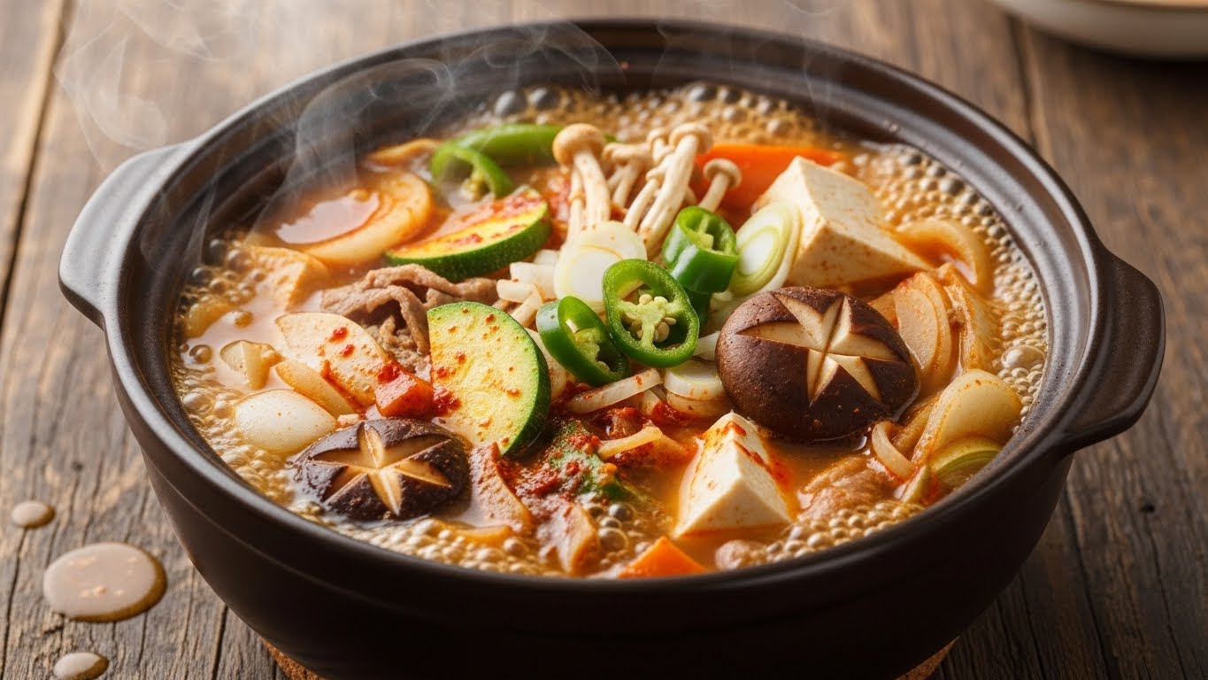된장과 육수를 끓인 후