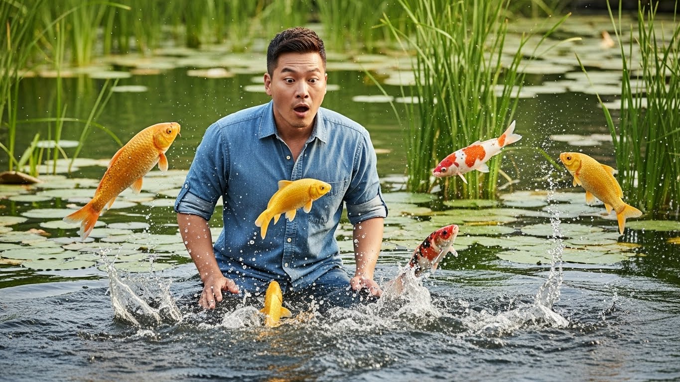 물고기를 손이나 도구로 잡는 꿈은 재물, 성취, 기회 포착을 의미해요.