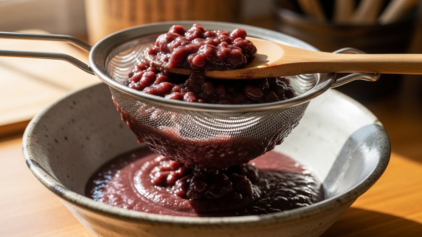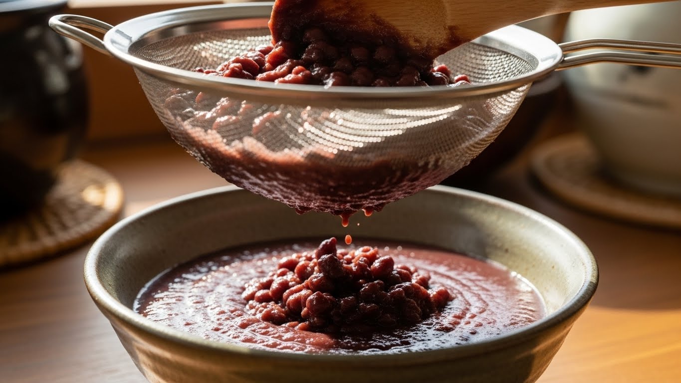 삶은 팥은 따로 건져내어 곱게 갈아 사용하면 더욱 부드러운 동지 팥죽이 완성됩니다.