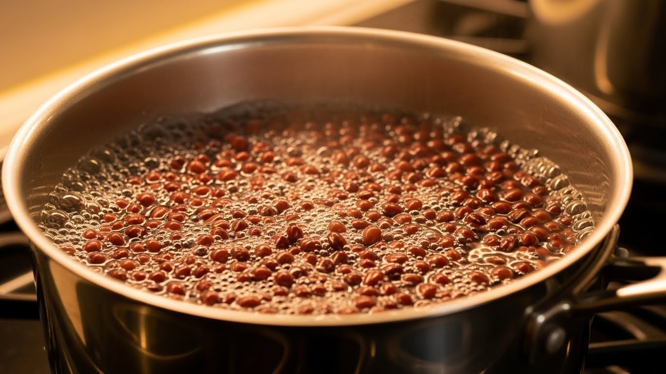 동지 팥죽의 핵심은 팥 삶기입니다. 생팥은 특유의 떫은맛이 있기 때문에 첫 삶은 물은 반드시 버려야 합니다.
