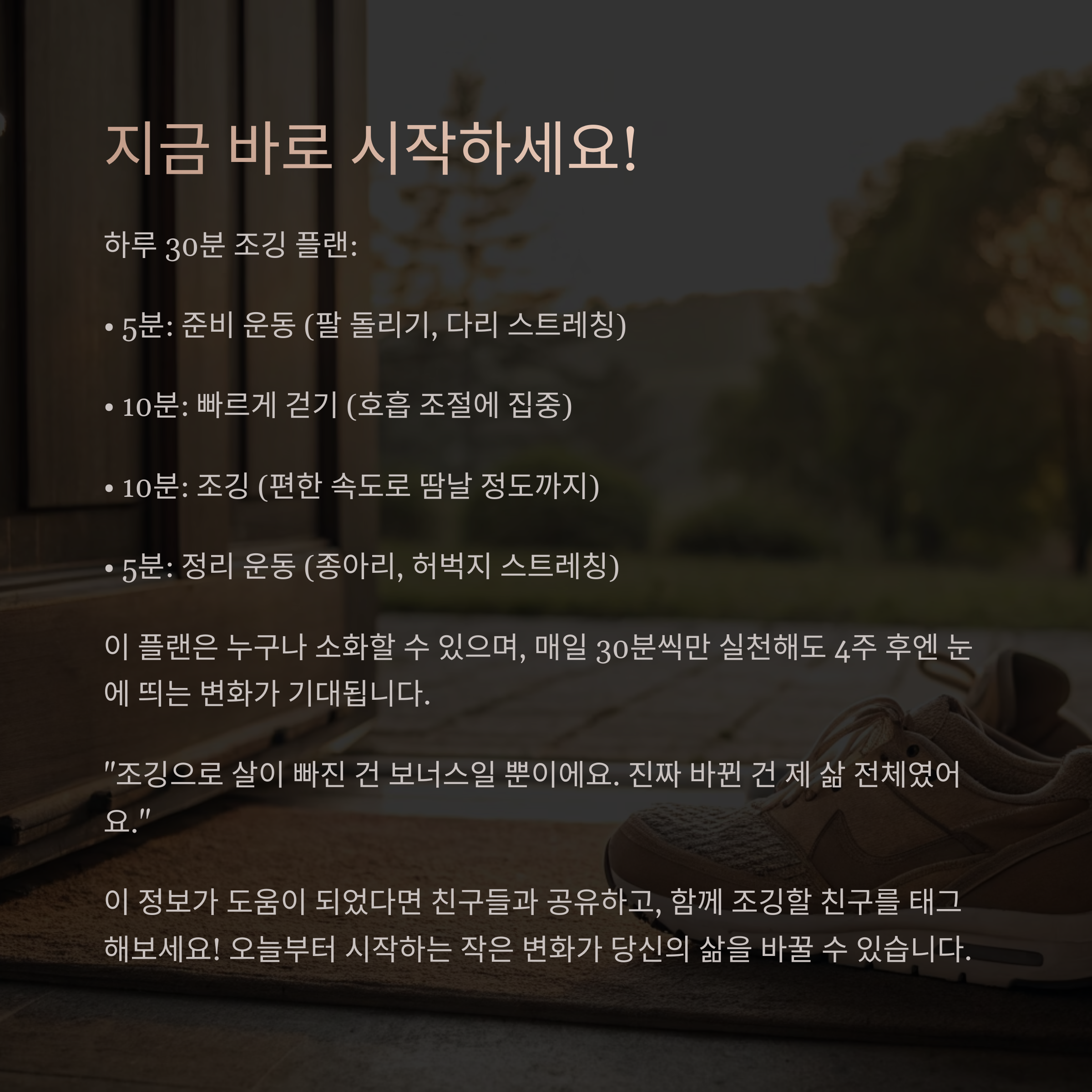 마지막으로, 바로 실행 가능한 하루 30분 조깅 플랜을 소개합니다.
