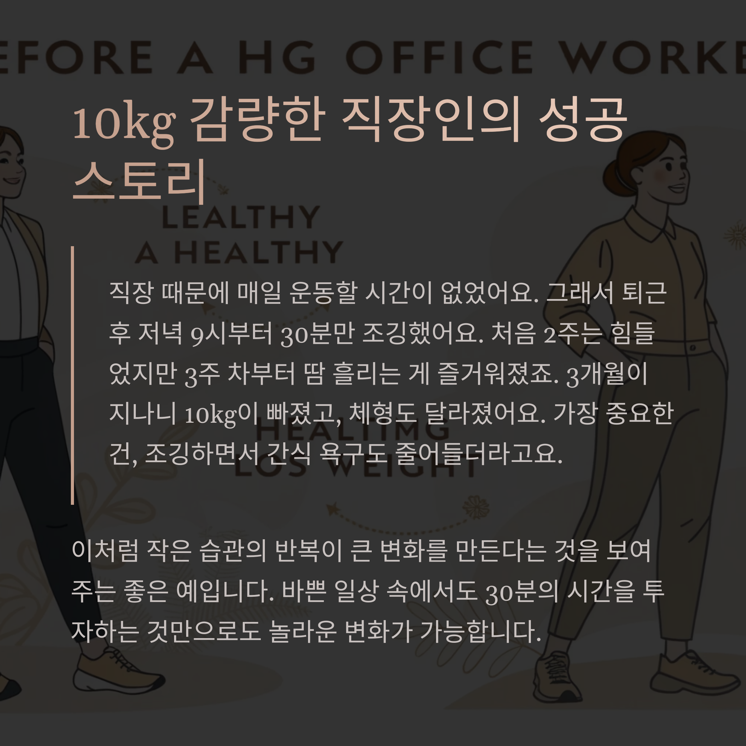 이들은 감량 후에도 조깅을 멈추지 않고, 체형과 멘탈 모두를 안정적으로 유지하고 있습니다.