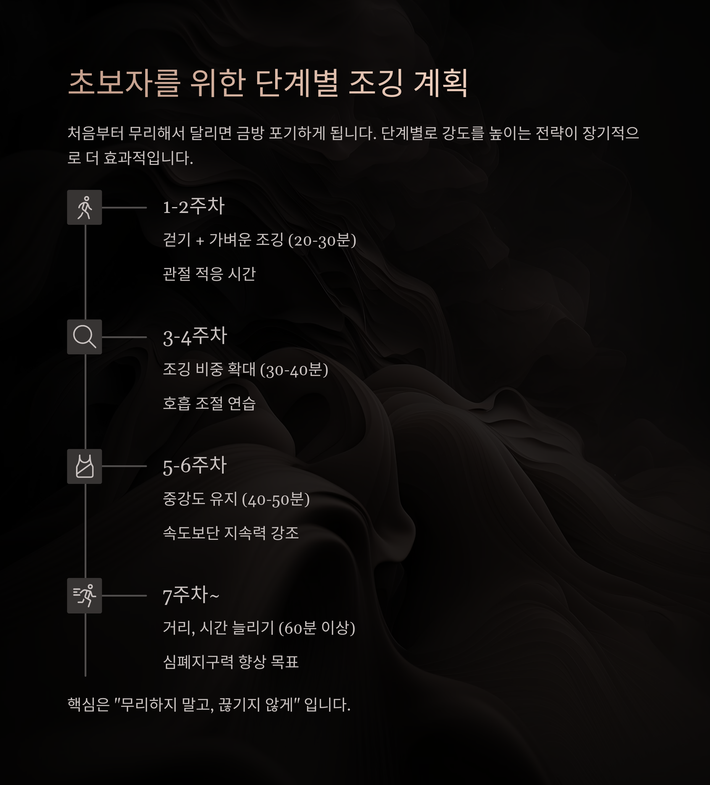 특히 초보자일수록 "매일 20분만이라도 걷고 뛰는 습관"을 만드는 것이 핵심입니다.