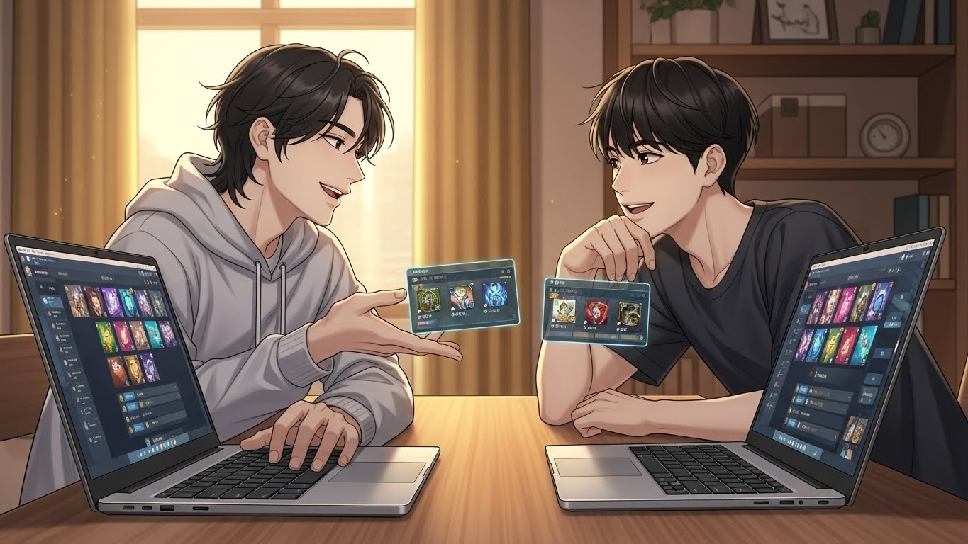 게임 내 아이템, 경험치, 재화 등을 서로 나누거나 협력하는 관계를 표현할 때 쓰였습니다.