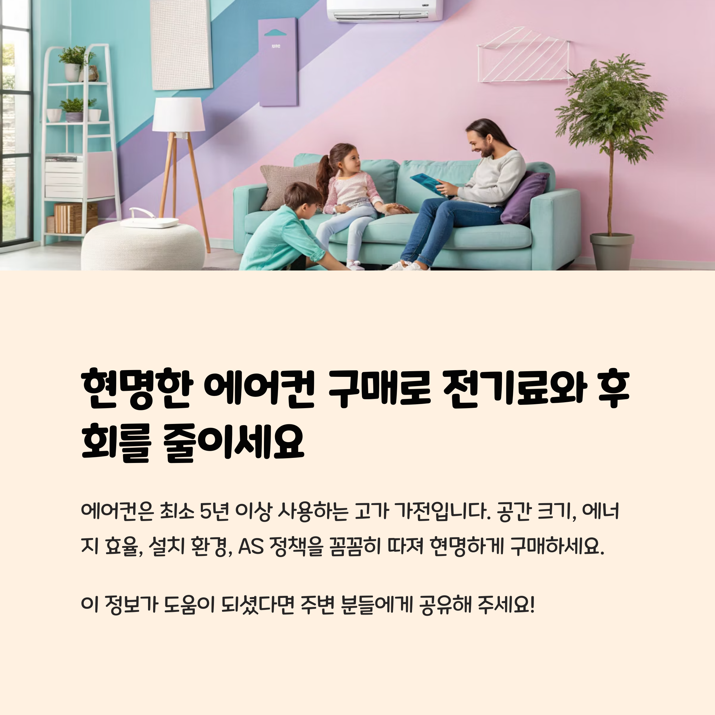 따라서 단순히 냉방 능력이나 브랜드만 보고 구매하면 에너지 낭비, 소음, 불편한 설치 등 다양한 문제가 발생할 수 있습니다.