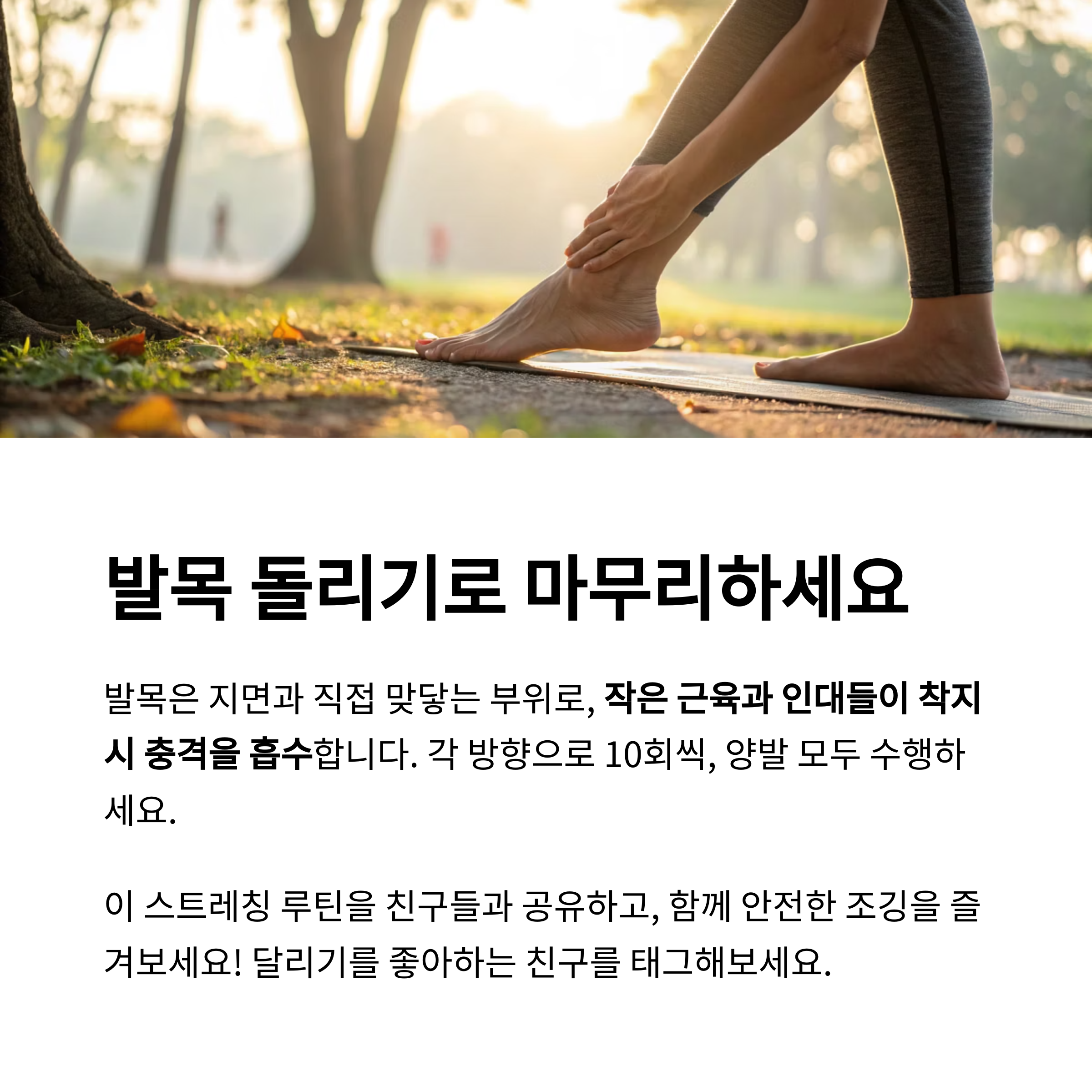 "발목이 유연해져야 조깅 후에도 통증 없이 회복이 빠릅니다."
