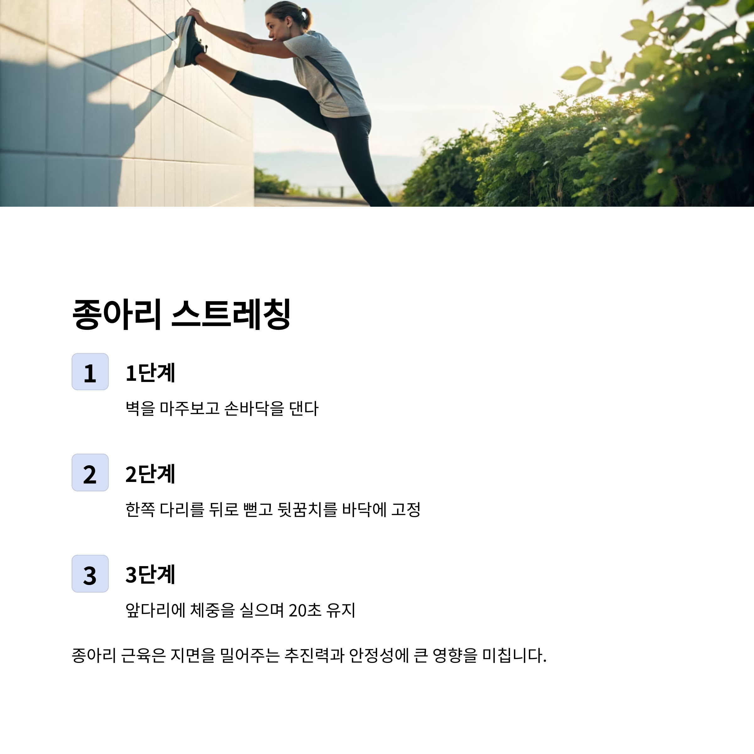 종아리 스트레칭: 발목 보호와 추진력 향상