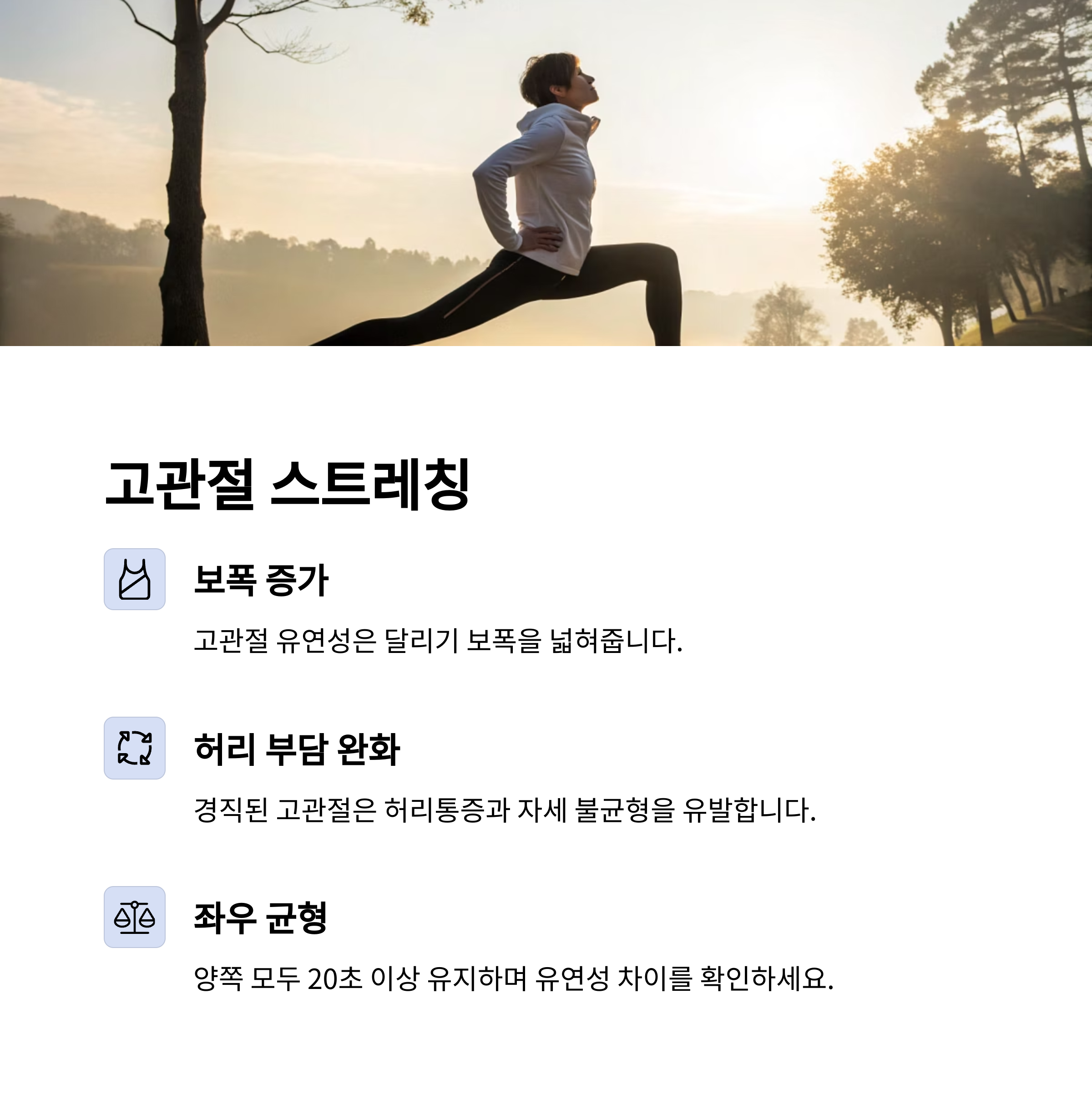 고관절 스트레칭: 보폭 증가와 허리 부담 완화