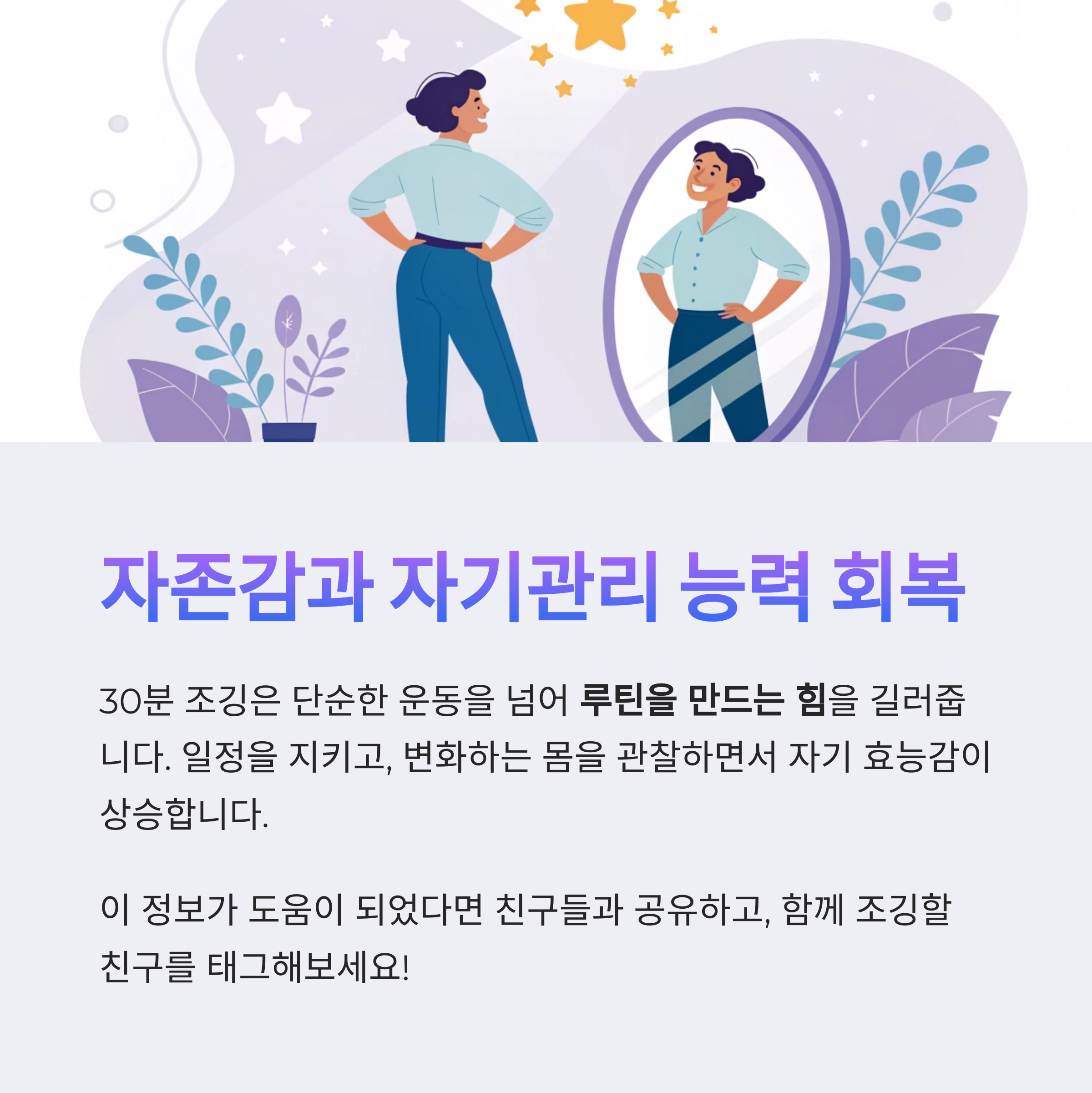 일정을 지키고, 변화하는 몸을 관찰하면서 자기 효능감이 상승하고