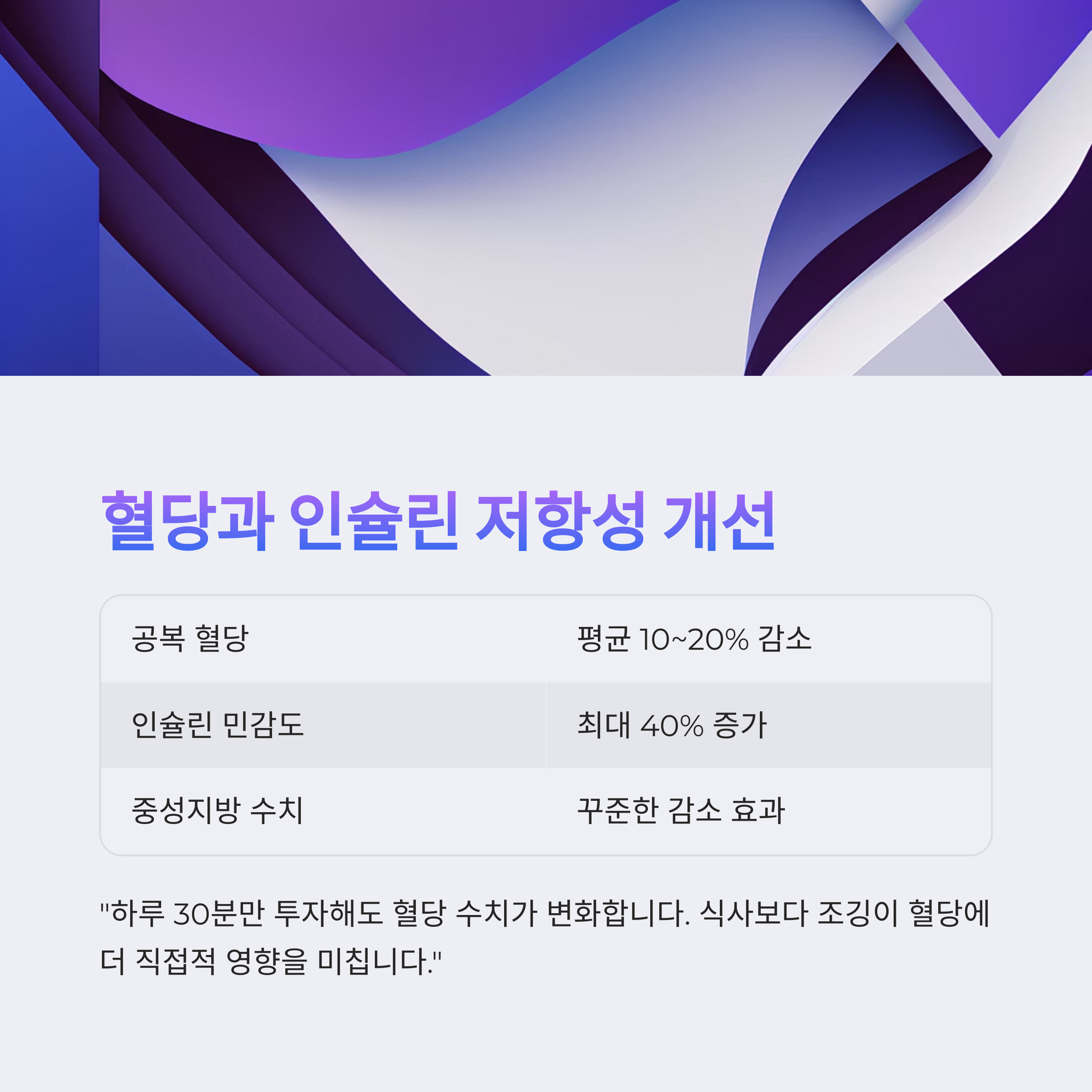 특히 당뇨 전단계이거나 가족력이 있는 사람에게는 필수 운동입니다.