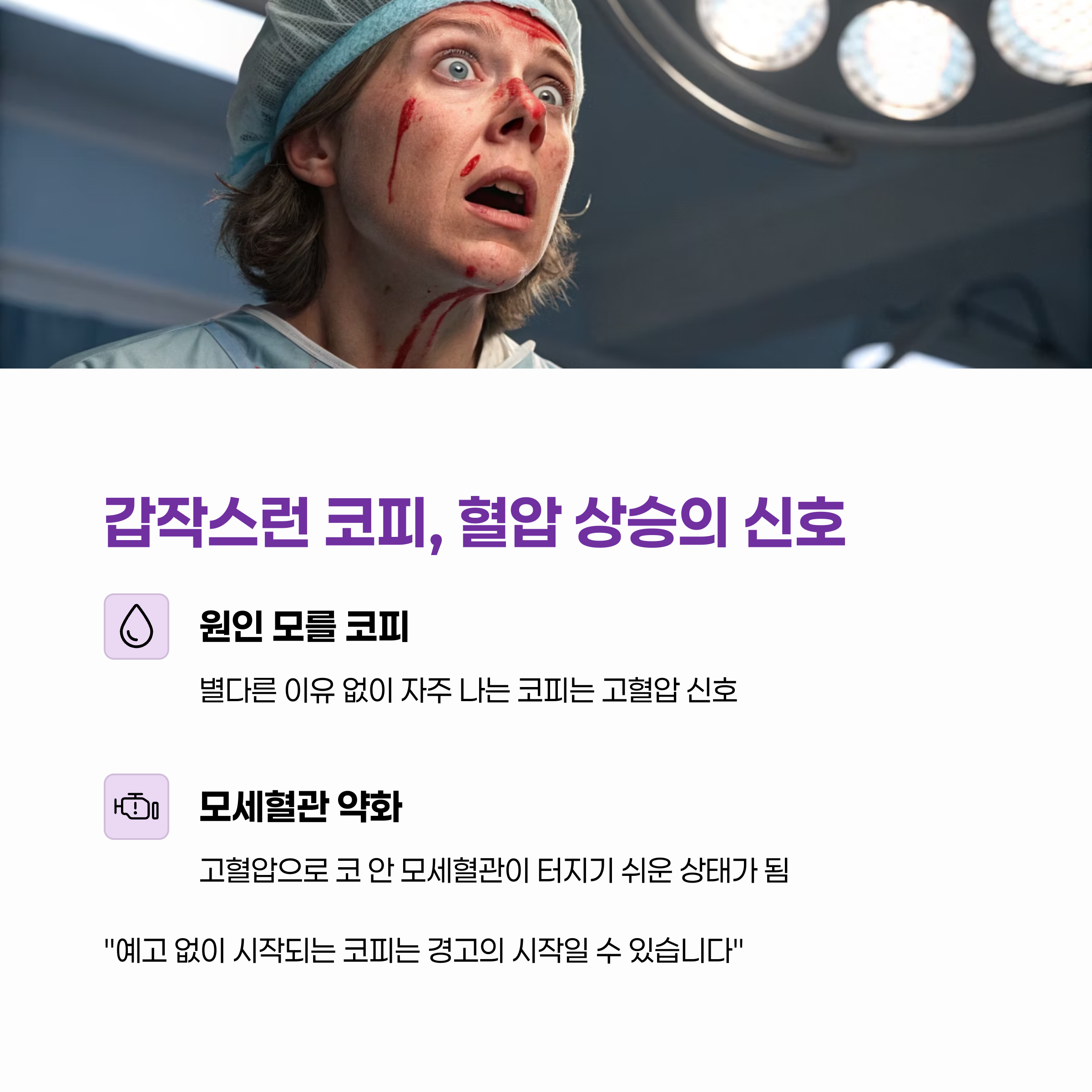"예고 없이 시작되는 코피는 경고의 시작일 수 있습니다"