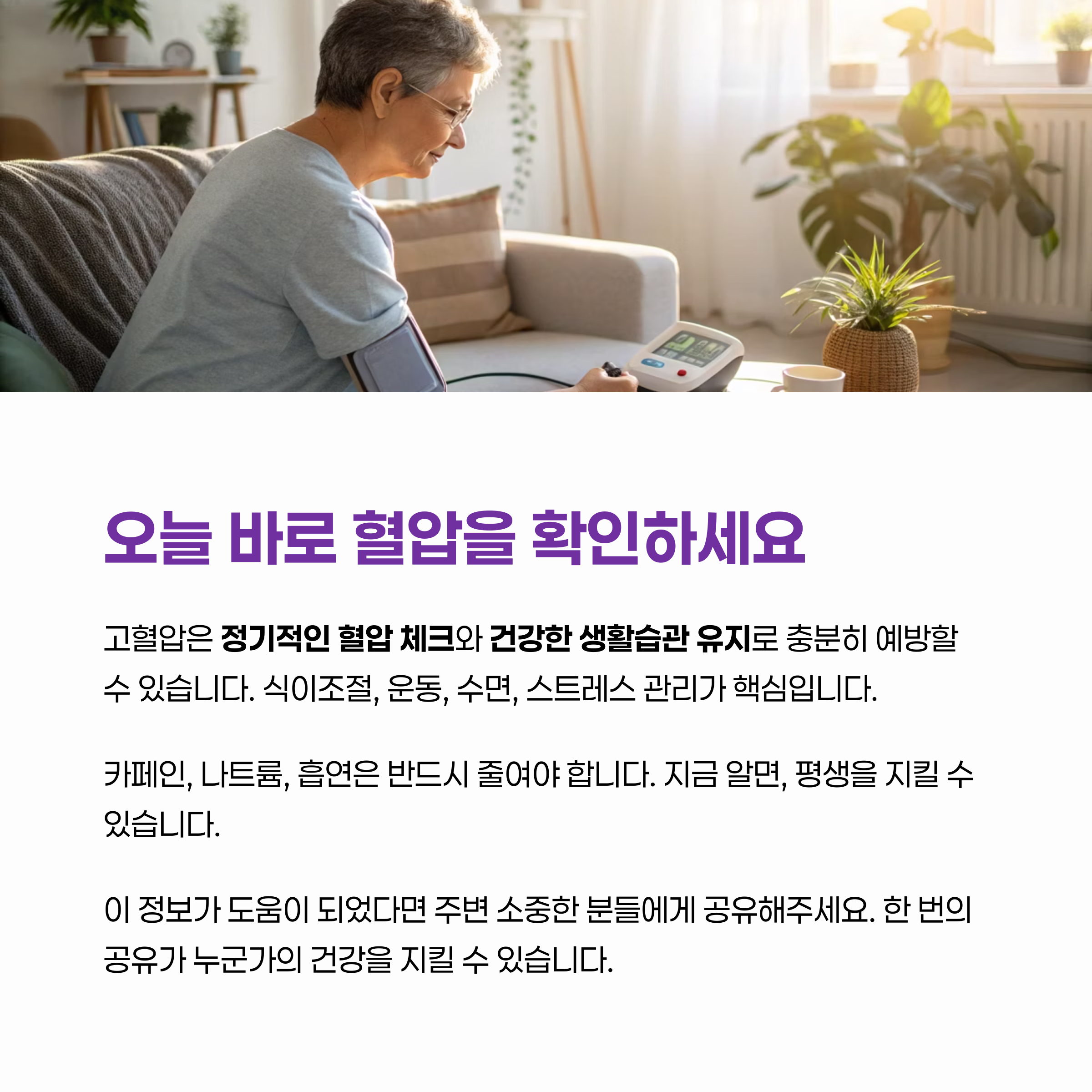 예방을 위해 정기적인 혈압 측정과 생활습관 점검이 반드시 필요합니다.