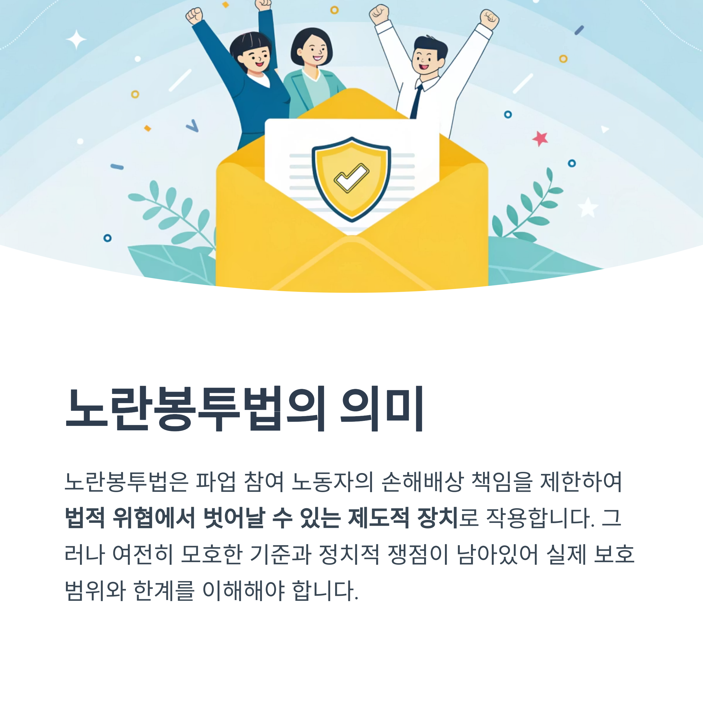 불법 폭력행위, 생산시설 점거 등은 여전히 손해배상 및 형사책임이 따를 수 있습니다.
